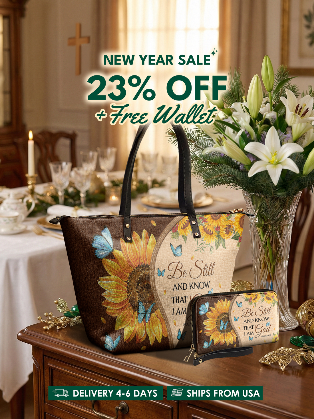 Stillness - Psalm 46:10 Leather Tote Bag Deal