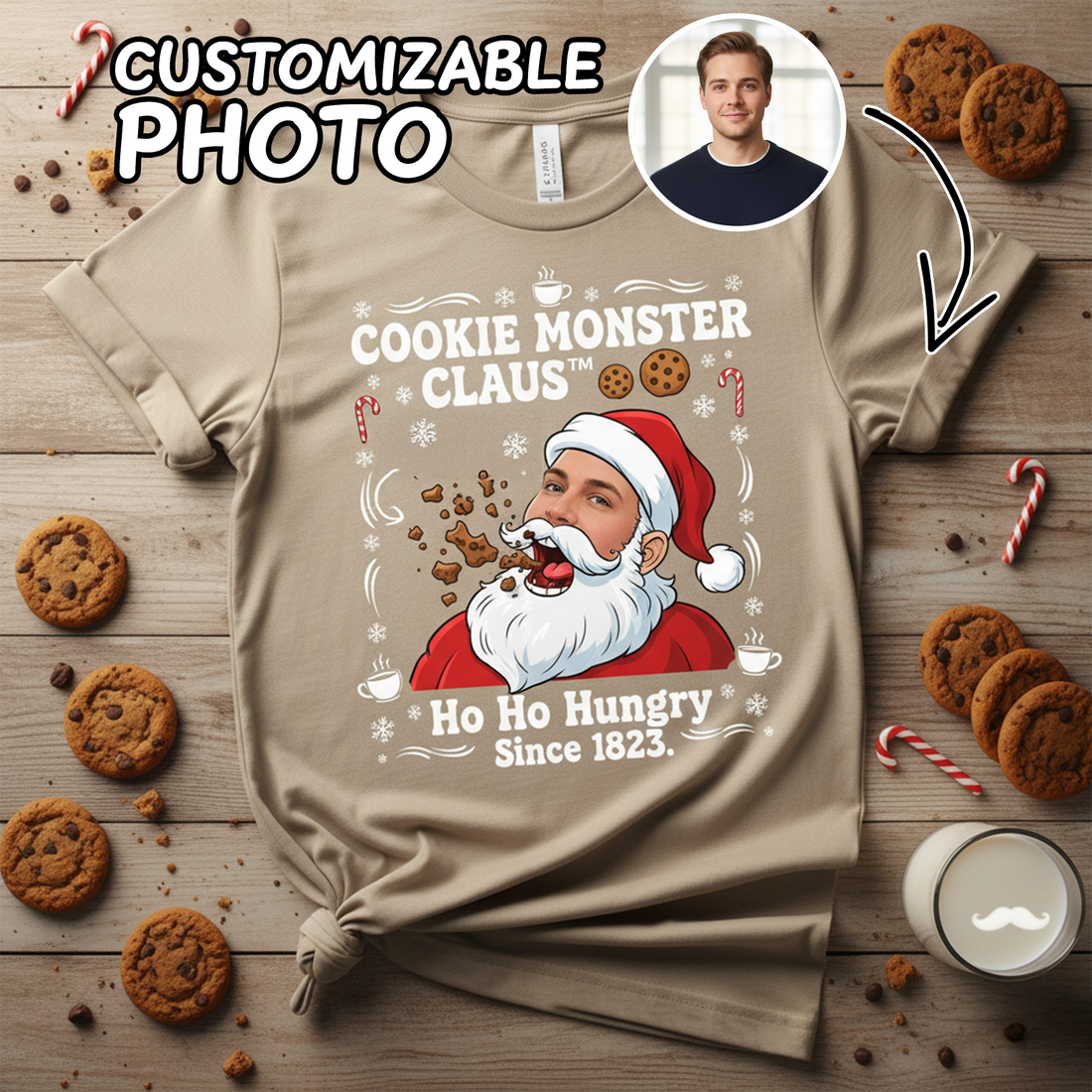 Cookie Monster Claus Custom Photo T-Shirt, Funny Christmas Gift, Personalized Santa Tee, Holiday Humor Shirt for Men, Ho Ho Hungry Since 1823 | T-shirt 5