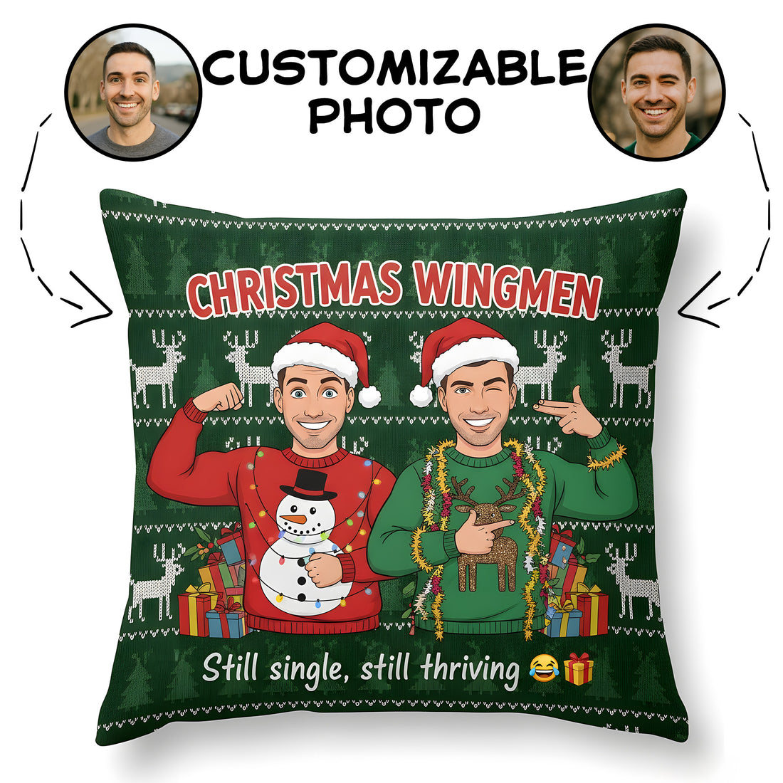 Custom “Christmas Wingmen” Pillow – Funny Personalized Holiday Gift for Friends | Still Single Still Thriving Cushion | Pillow29