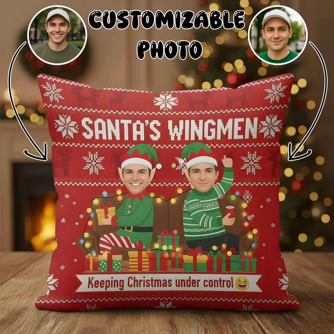 Custom Santa’s Wingmen Pillow – Funny Christmas Gift for Friends, Personalized Elf Design Cushion, Holiday Home Decor | Pillow27