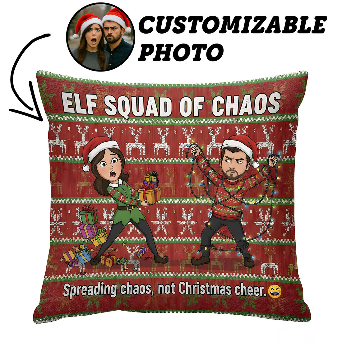 Custom “Elf Squad of Chaos” Pillow – Funny Personalized Christmas Cushion | Spreading Chaos, Not Christmas Cheer | Pillow39