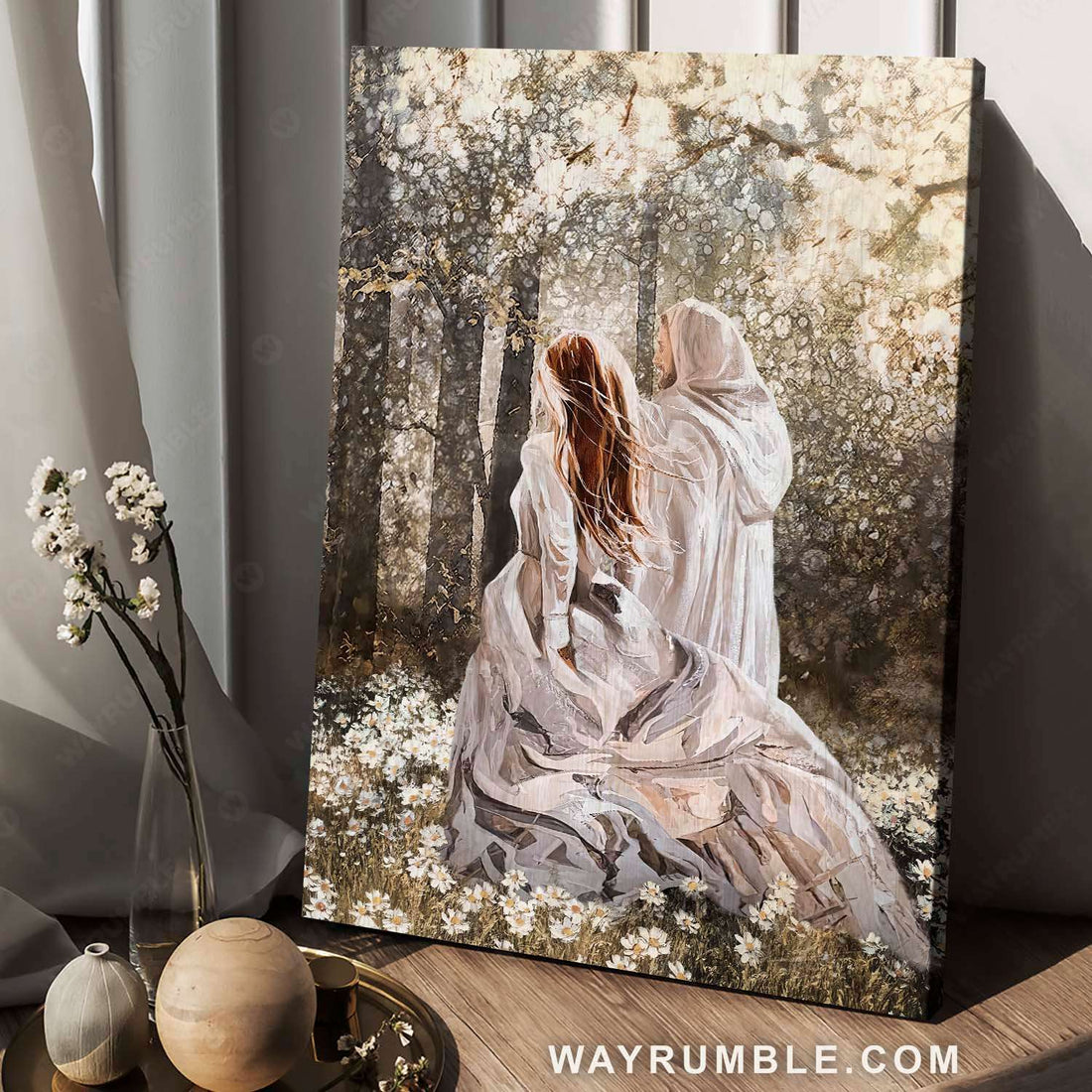 Walking with Jesus, Beautiful girl painting, In the forest, Among the flower field - Jesus Portrait Canvas Prints, Christian Wall Art