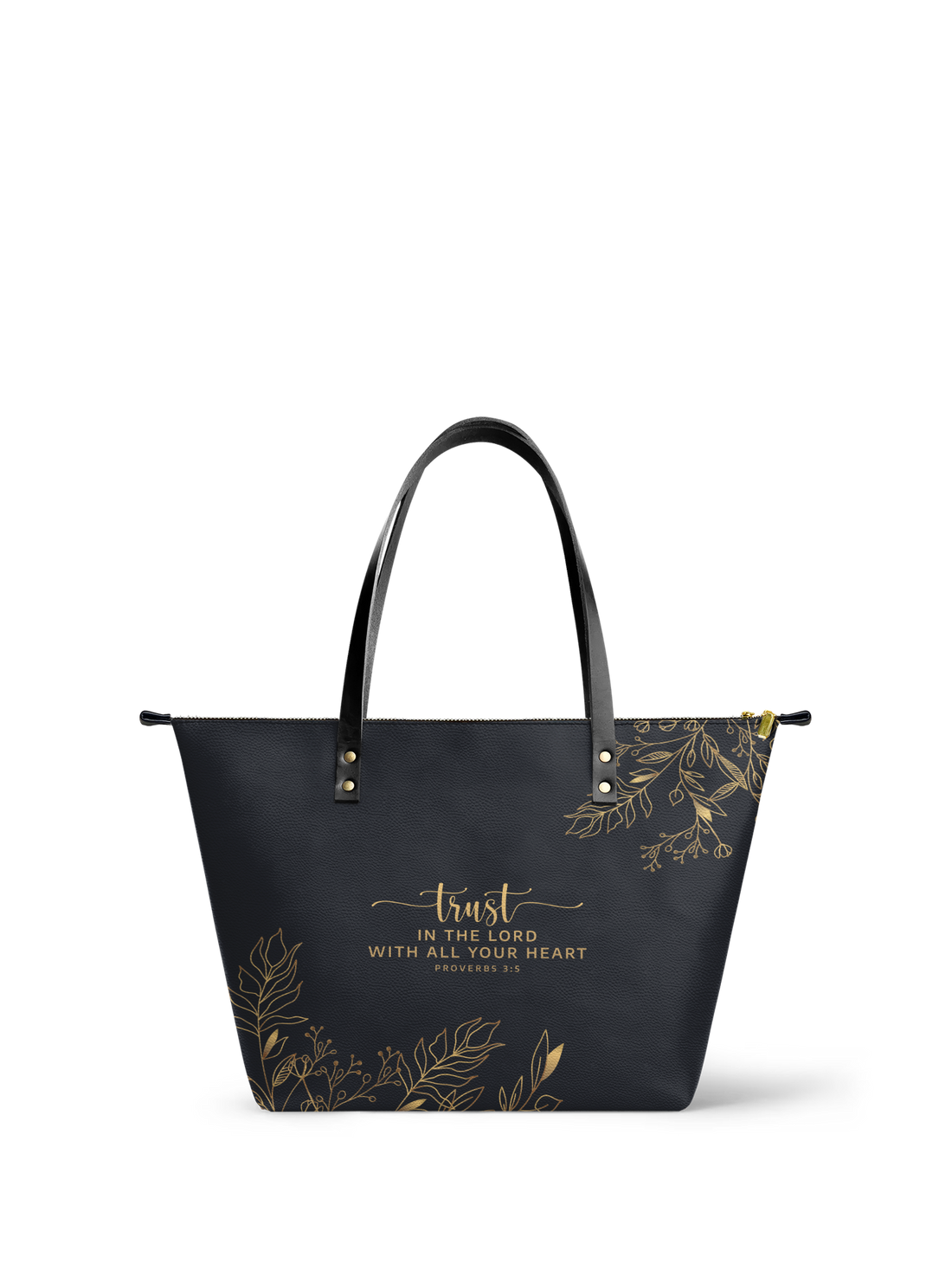 "Trust" - Proverbs 3:5 Leather Tote Bag