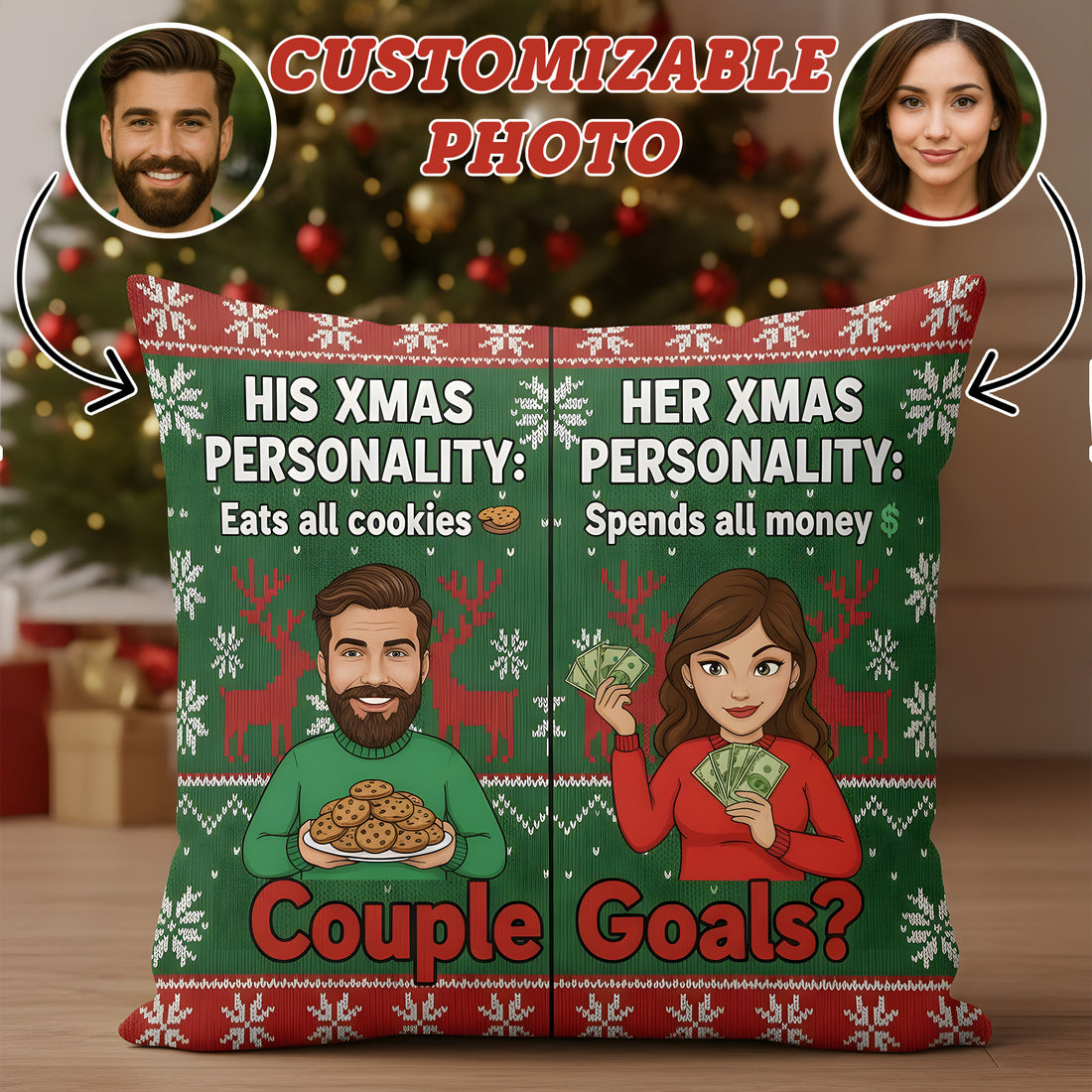 Custom Couple Goals Pillow – Funny Christmas Gift for Couples, His & Her Xmas Personality Cushion, Holiday Home Decor | Pillow54