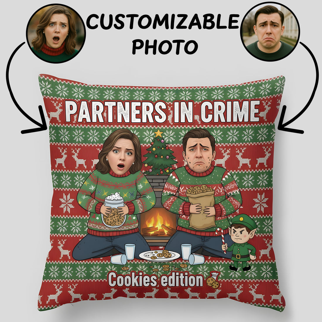 Custom Partners in Crime Pillow – Funny Christmas Couple Gift, Personalized Cookies Edition Cushion, Holiday Home Decor | Pillow48
