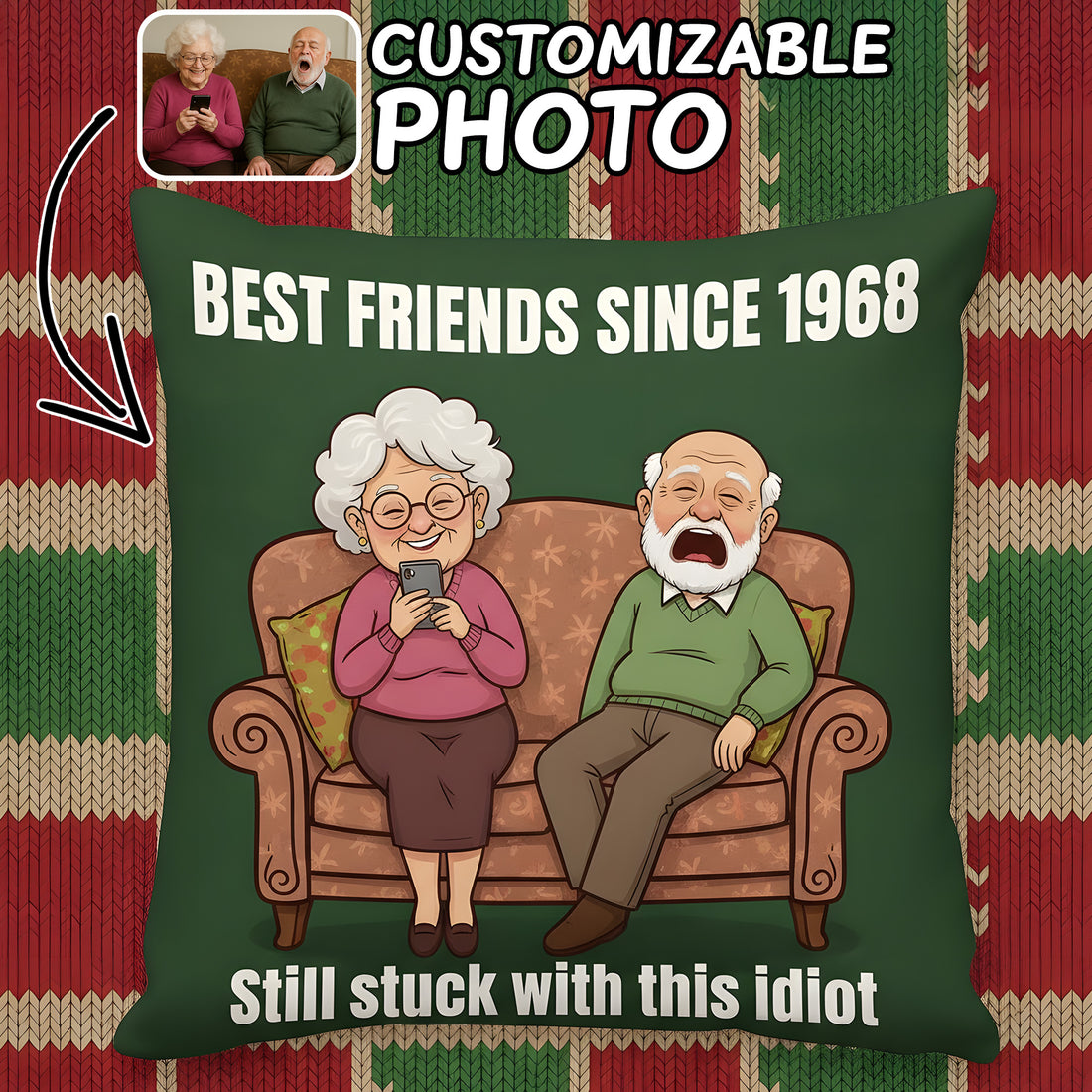 Funny Couple Christmas Pillow – Ugly Sweater Knit Design, Personalized Photo Gift for Him & Her, Holiday Humor Decor Cushion | Pillow72