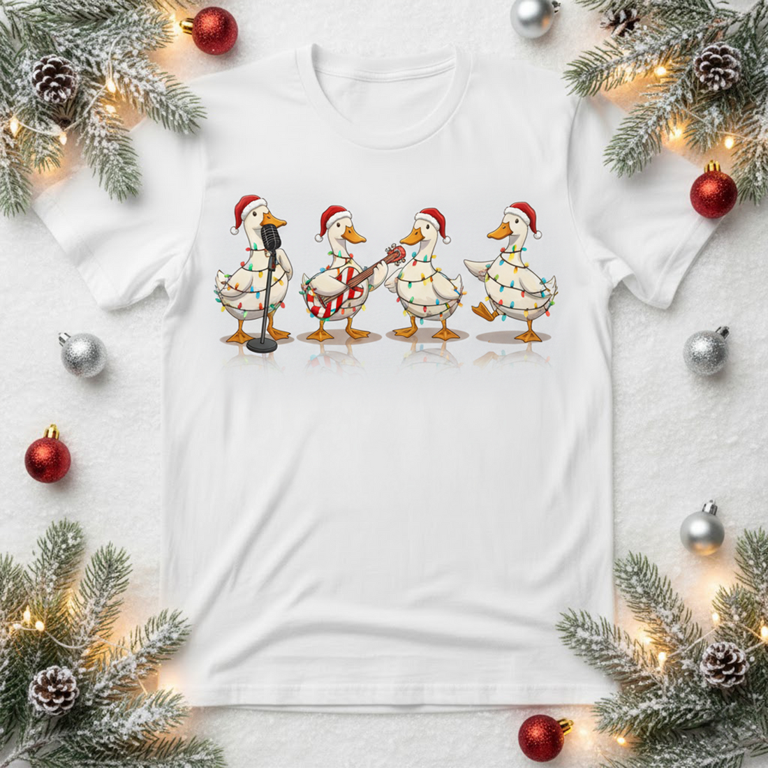 Christmas Ducks Band T-Shirt, Funny Holiday Animal Tee, Cute Xmas Gift Shirt, Festive Duck Lights Top for Family Matching Outfits and Parties | T-shirt 58
