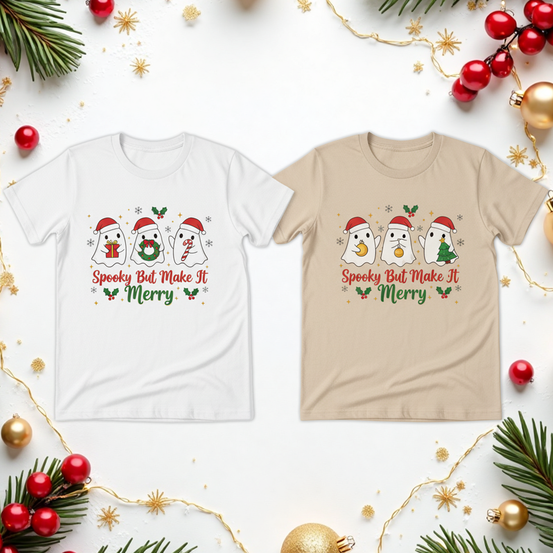 Official Cookie Tester T-Shirt, Funny Spooky But Make It Merry T-Shirt, Funny Christmas Ghost Tee, Holiday Crossover Shirt, Cute Xmas Gift for Couples, Halloween Christmas Top | T-shirt 65
