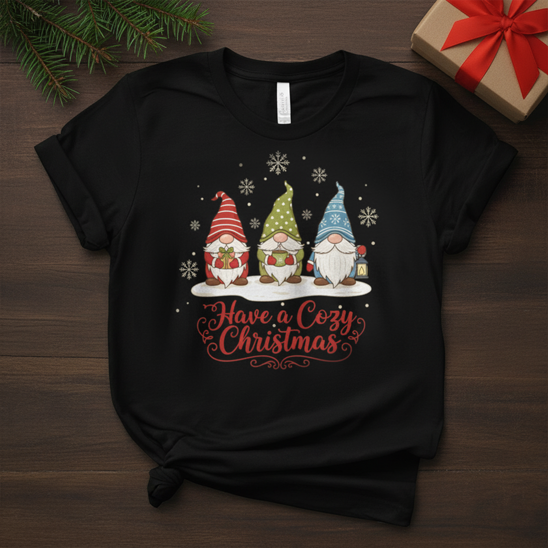 Wrap yourself in holiday warmth with our “Have a Cozy Christmas” Gnome T-Shirt! 🧦Featuring three adorable...
