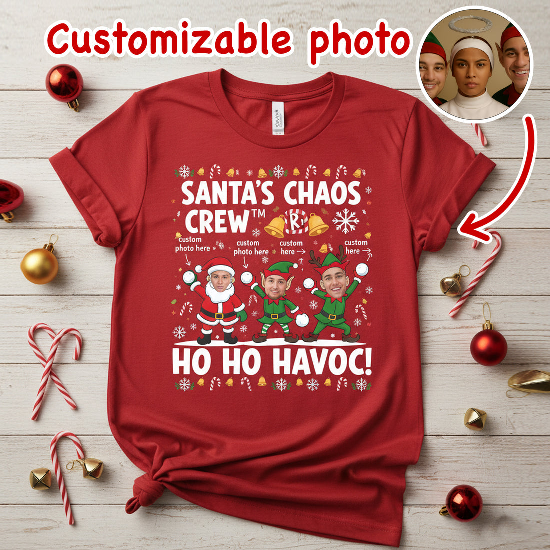Therapy Elf Custom Photo Christmas T-Shirt, Funny Personalized Santa’s Chaos Crew Custom Photo T-Shirt, Personalized Xmas Gift, Holiday Party Shirt, Ho Ho Havoc Design | T-shirt 6