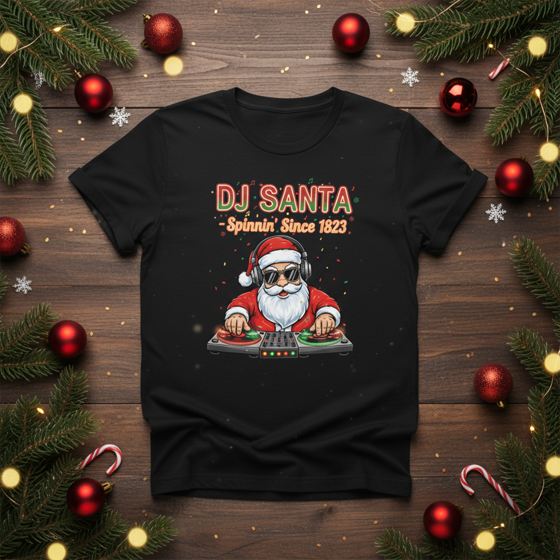 Turn up the holiday beats with our DJ Santa Christmas T-Shirt! 🎅Featuring a cool Santa...