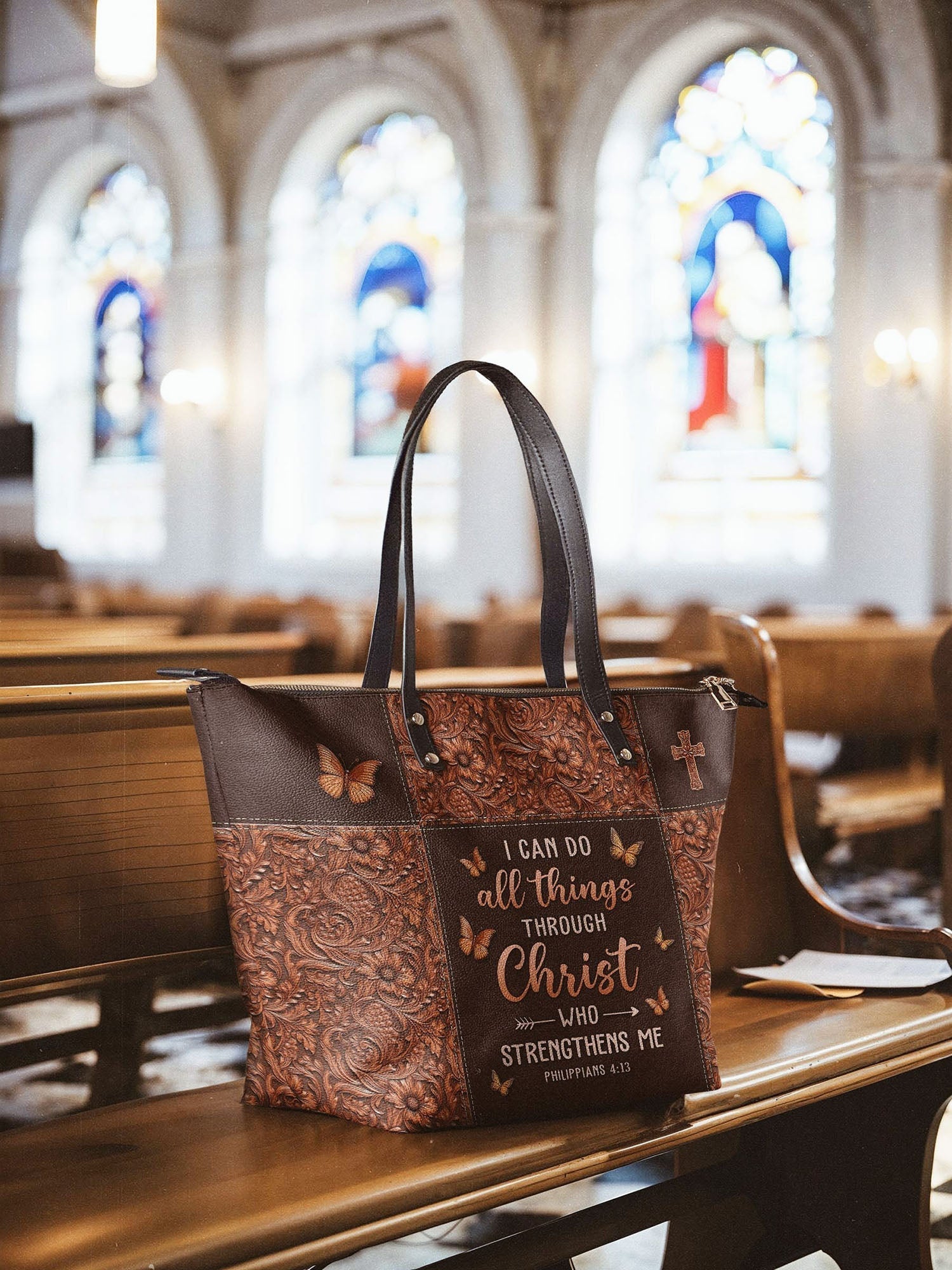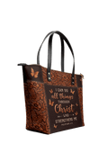 "Believe" - Philippians 4:13 Leather Tote Bag