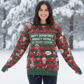 Get ready for a Christmas full of laughs with the Booty Department Naughty Patrol Ugly Sweater! 🎅This hilarious design features Santa's elves on high alert, patrolling for any naughty behavior with quotes like "REPORT TO SANTA IMMEDIATELY!" and "NAUGHTY ALERT!".