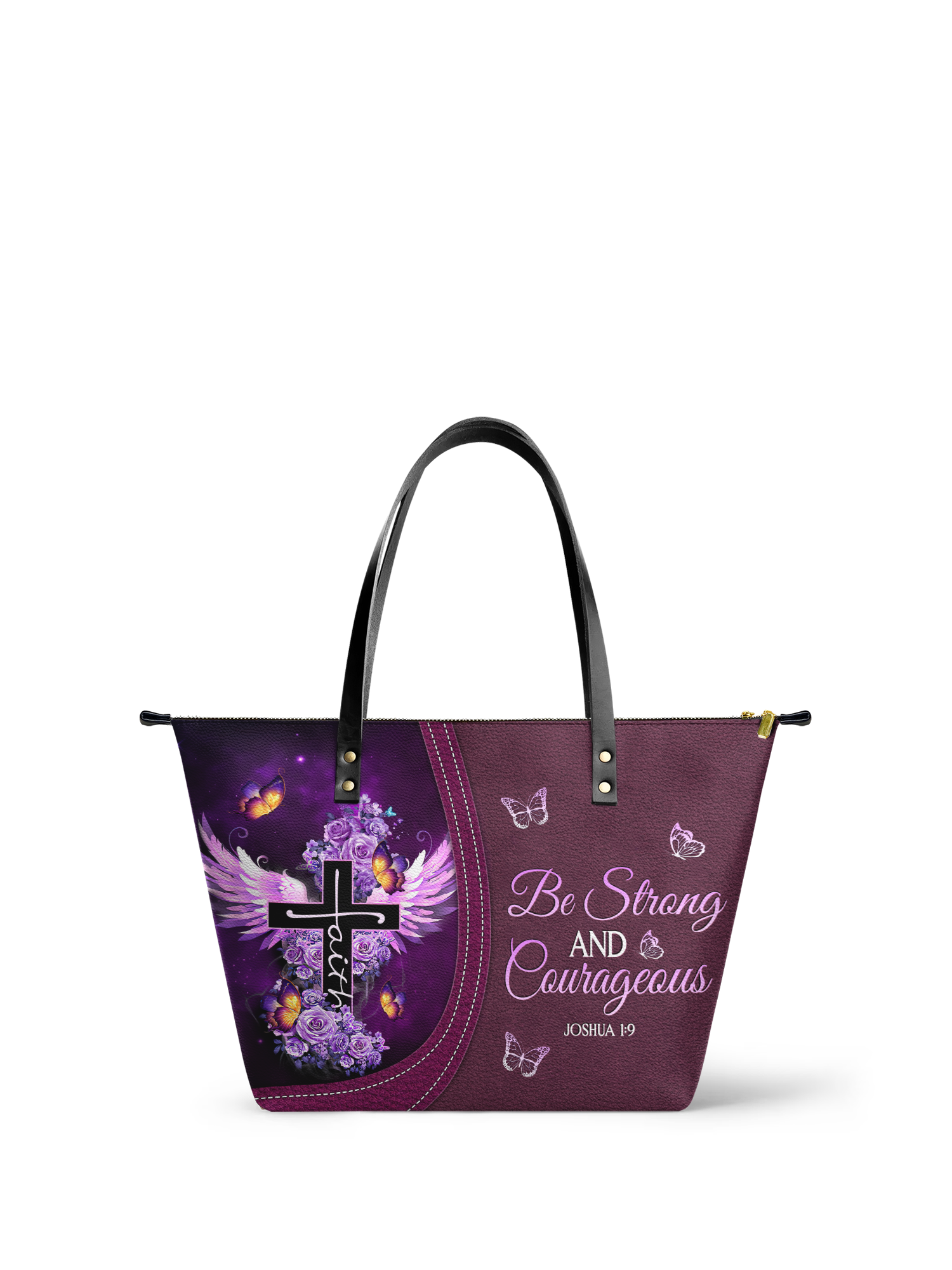 "Courage" - Joshua 1:9 Leather Tote Bag