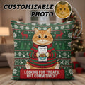 Custom Cat Christmas Pillow – Funny Pet Gift, Personalized Photo Linen Cushion, Double Sided Print | Pillow35