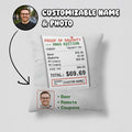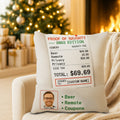 Made from premium linen fabric, soft to the touch yet durable, this pillow delivers both comfort and character. The design mimics a playful “receipt” from Santa — showing your personalized “charges” like Beer 🍺, Remote 🎮, and Privacy 🔒 — all adding up to the perfect total of holiday laughter.