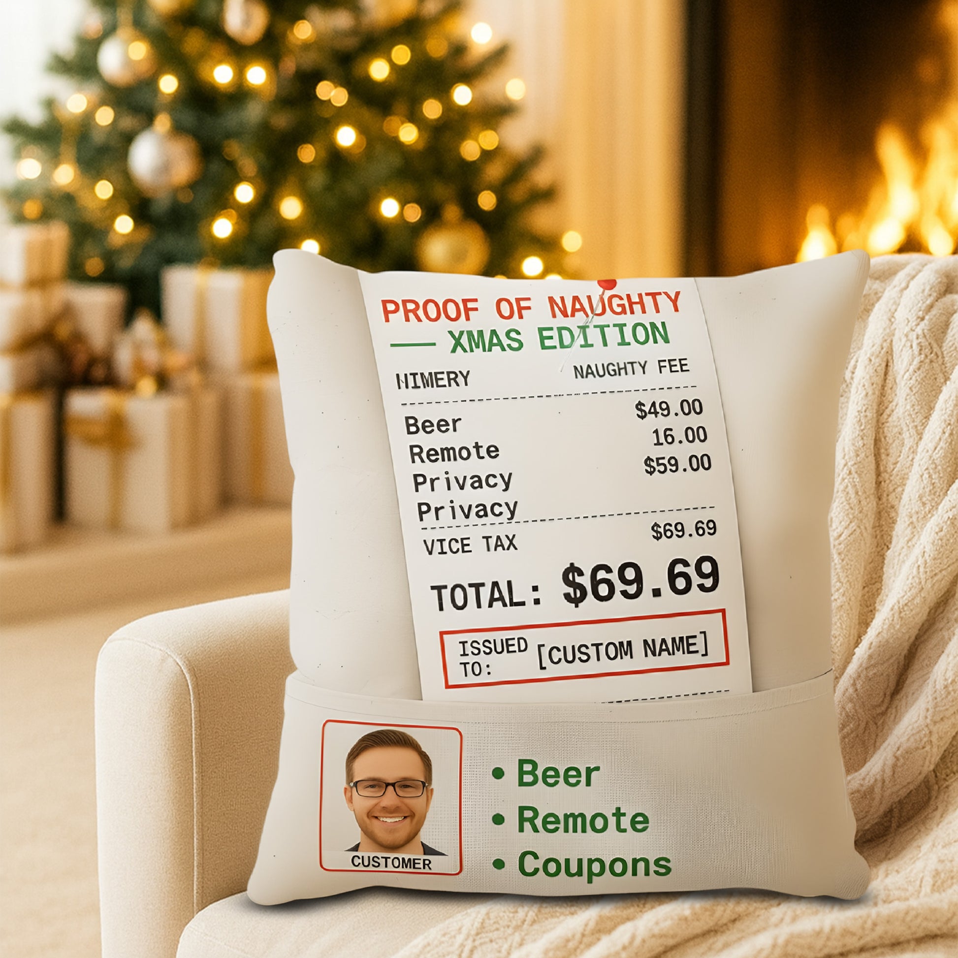 Custom “Proof of Naughty” Christmas Pillow – Funny Personalized Gift for Him | Custom Name & Photo Linen Cushion | Pillow18