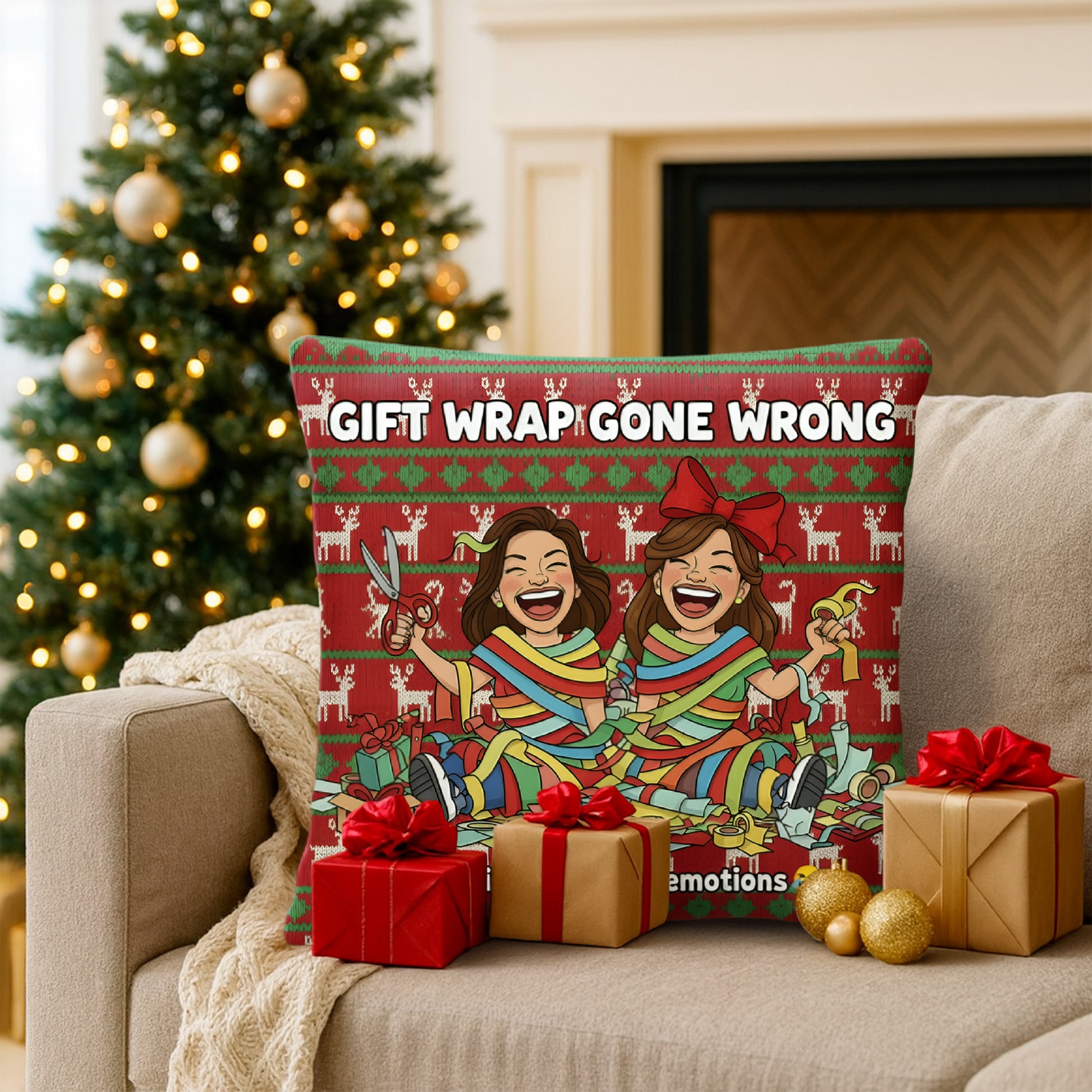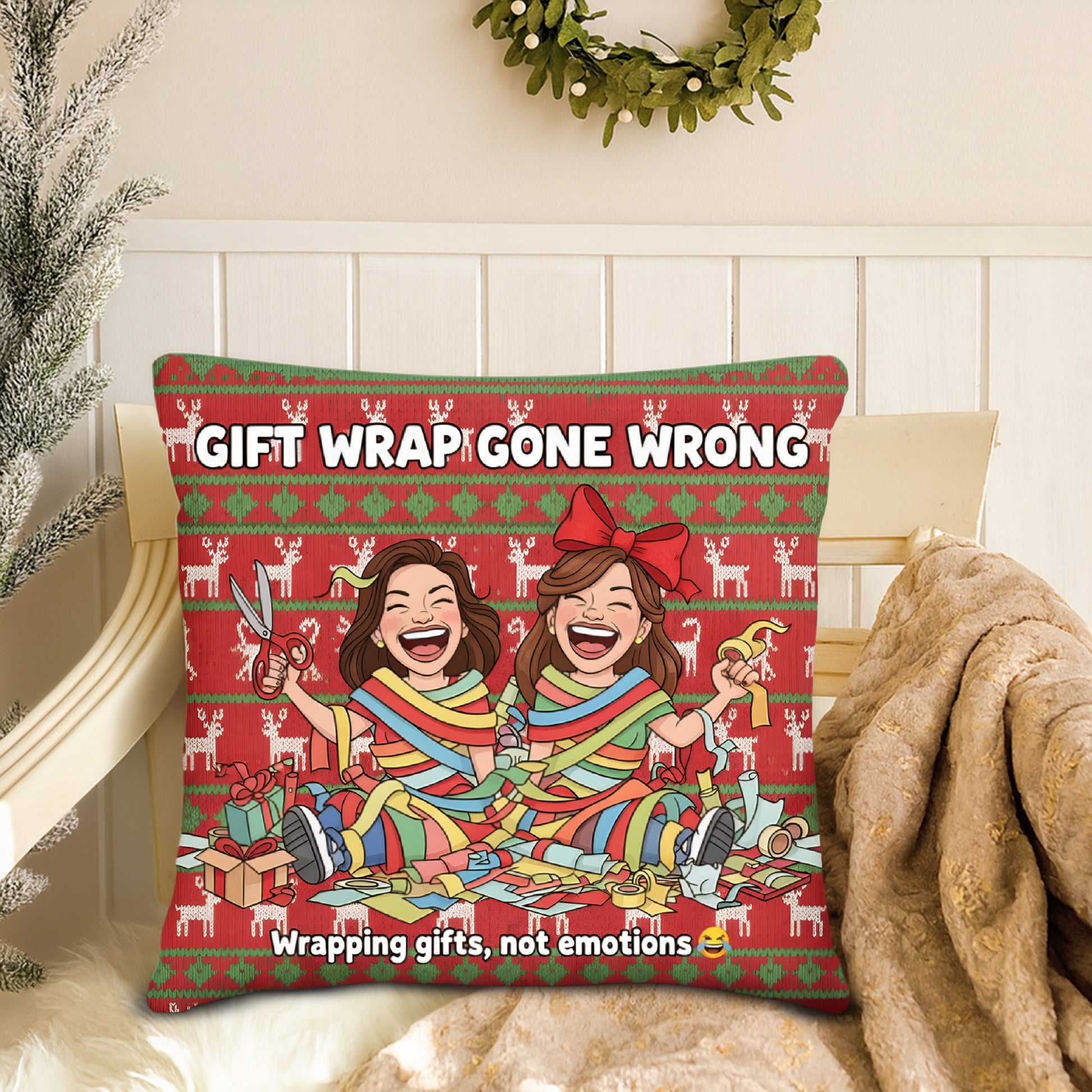 Custom Christmas Pillow – “Gift Wrap Gone Wrong” Personalized Funny Holiday Cushion | Perfect Gift for Best Friends or Sisters | Pillow36