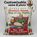 Custom King of Lazy Nights Pillow – Funny Personalized Gift for Men, Beer Chips Don’t Touch Remote, Custom Name & Photo Linen Cushion | Pillow64