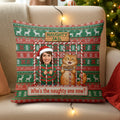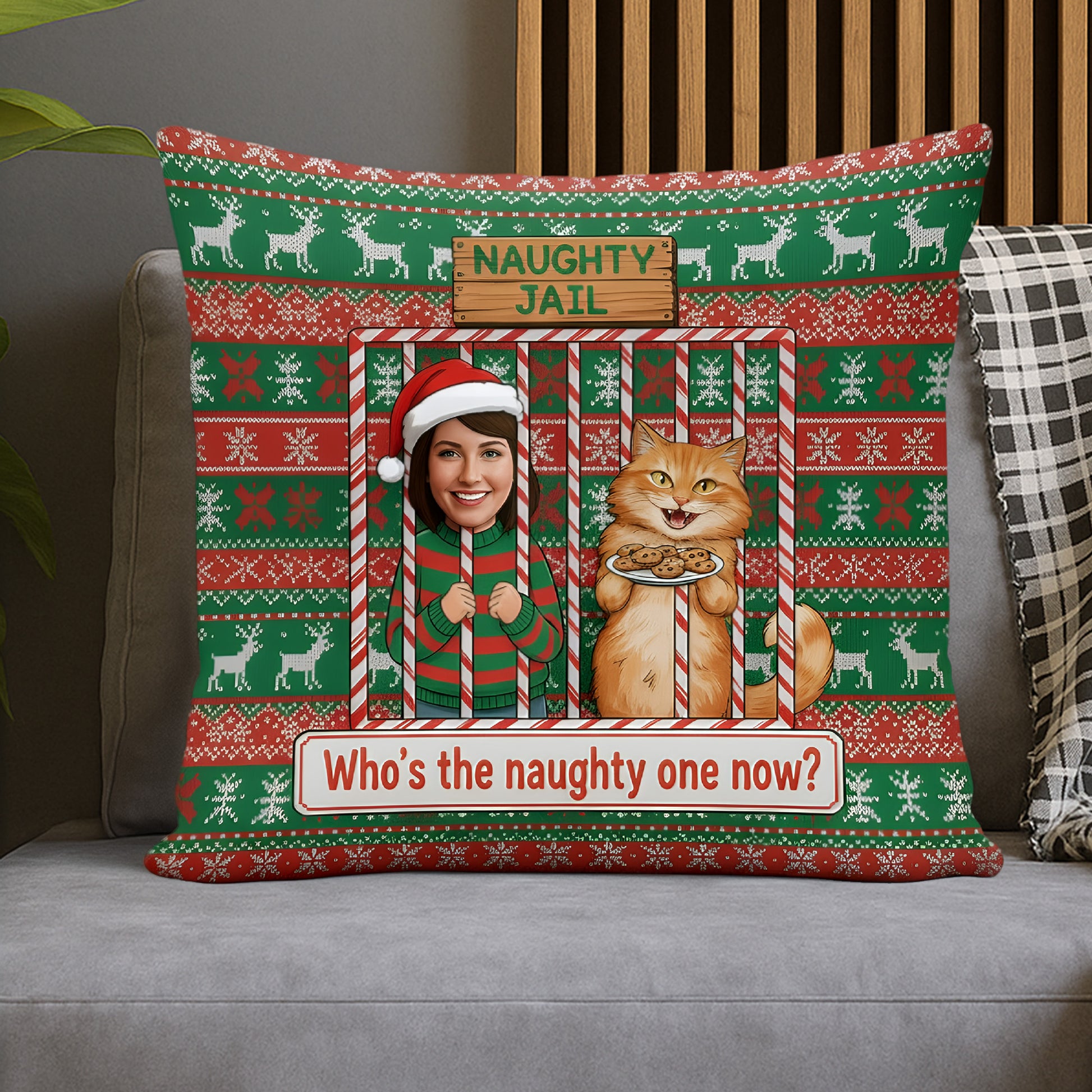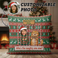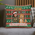 Custom Naughty Christmas Pillow – Funny Cat and Owner Gift, Personalized Photo Linen Cushion, Holiday Decor | Pillow41