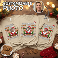 This hilarious custom photo Christmas T-shirt lets you (and your family or friends) become part of Santa’s Ho Ho Snack Patrol — the team responsible for testing every cookie before Christmas Eve! Featuring funny cartoon elves, milk, and cookies, plus your own face printed on Santa’s head, it’s the perfect personalized holiday tee for cookie lovers and festive families.