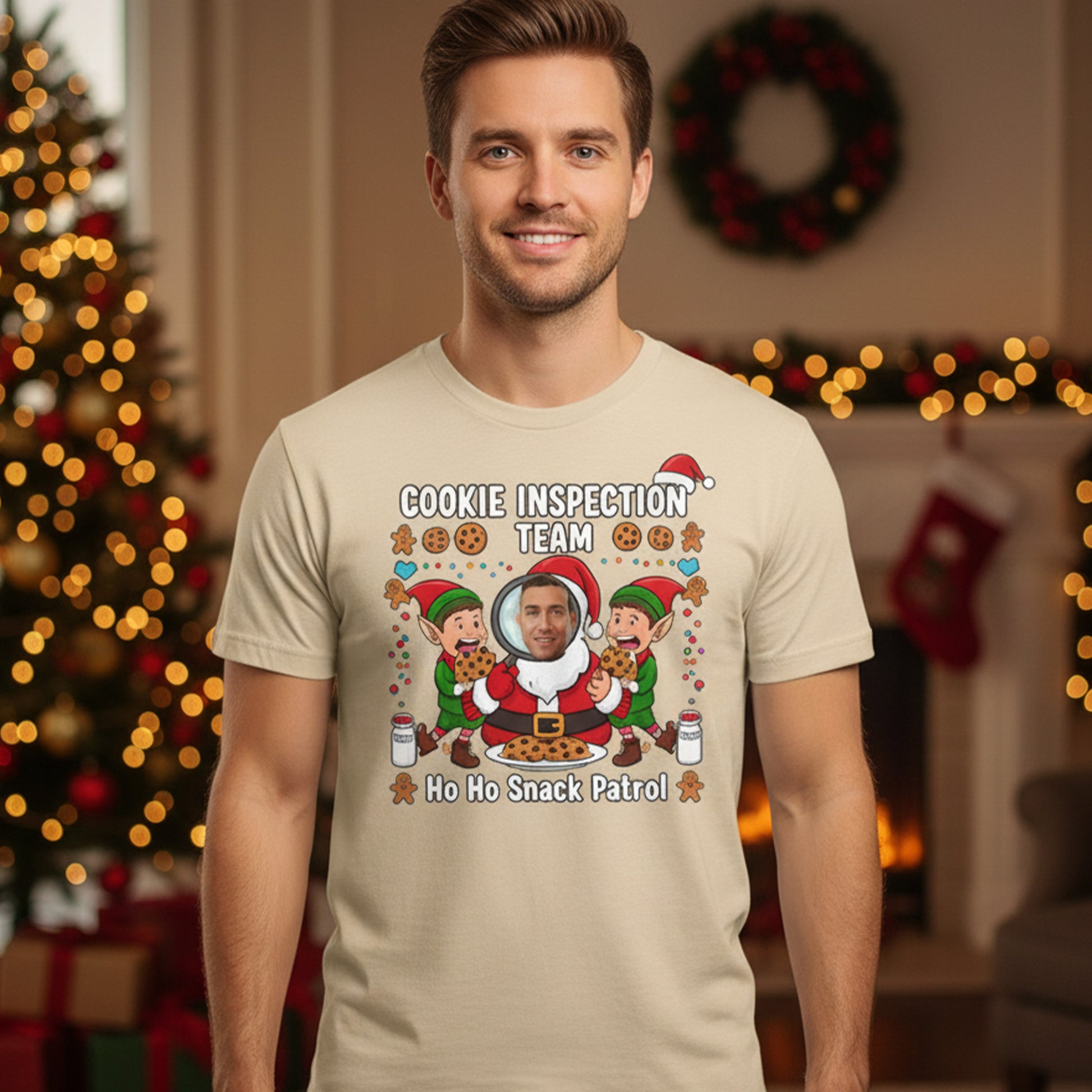 🎅 Join Santa’s Ho Ho Snack Patrol today — personalize your Cookie Inspection Team T-shirt and make this Christmas the sweetest one yet! 🍪💫