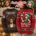 Custom Photo Couple Ugly Christmas Sweater, Reindeer Affairs, Sleighing Single 2025, Funny Personalized Face Xmas Jumper | Ugly 95