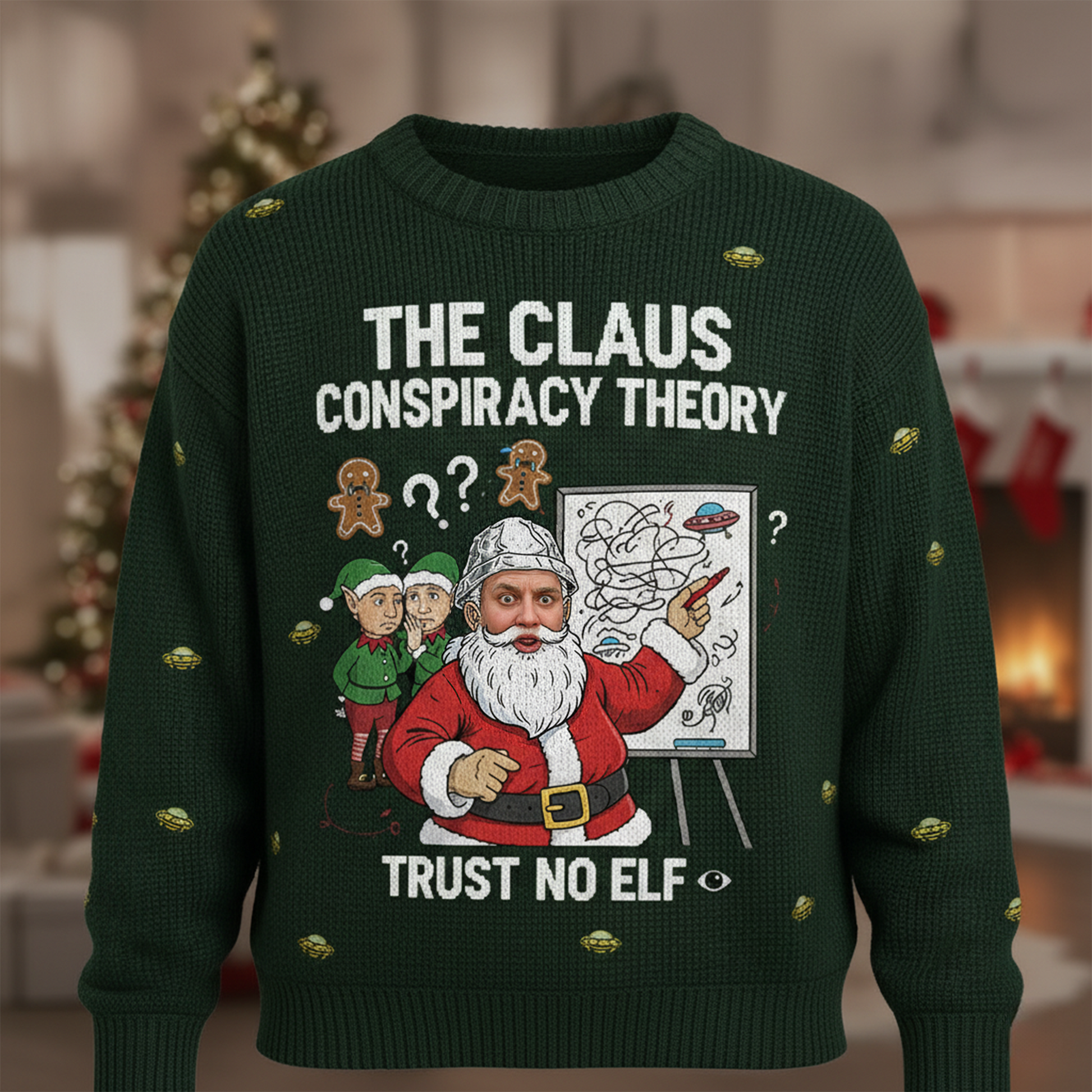 Click Add to Cart and get your custom “Claus Conspiracy Theory” sweater today — because even Santa needs a good laugh! 🎅✨