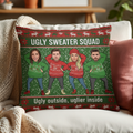 Custom Ugly Sweater Squad Pillow – Funny Christmas Gift for Family or Friends, Personalized Photo Linen Cushion Decor | Pillow31