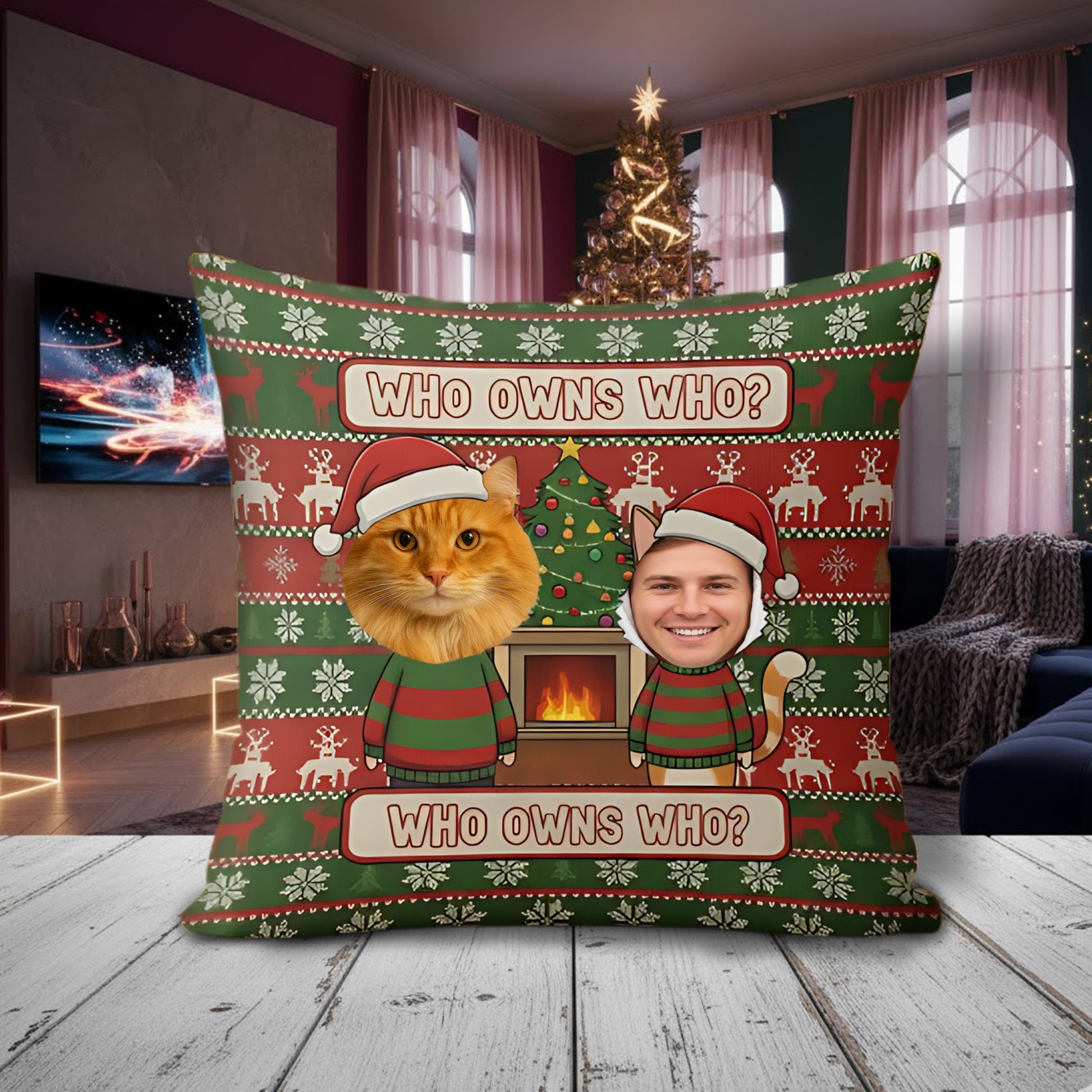 👉 Don’t wait till your cat orders you to — customize your “Who Owns Who” pillow today and make this Christmas the cutest one yet! 🎄🐾