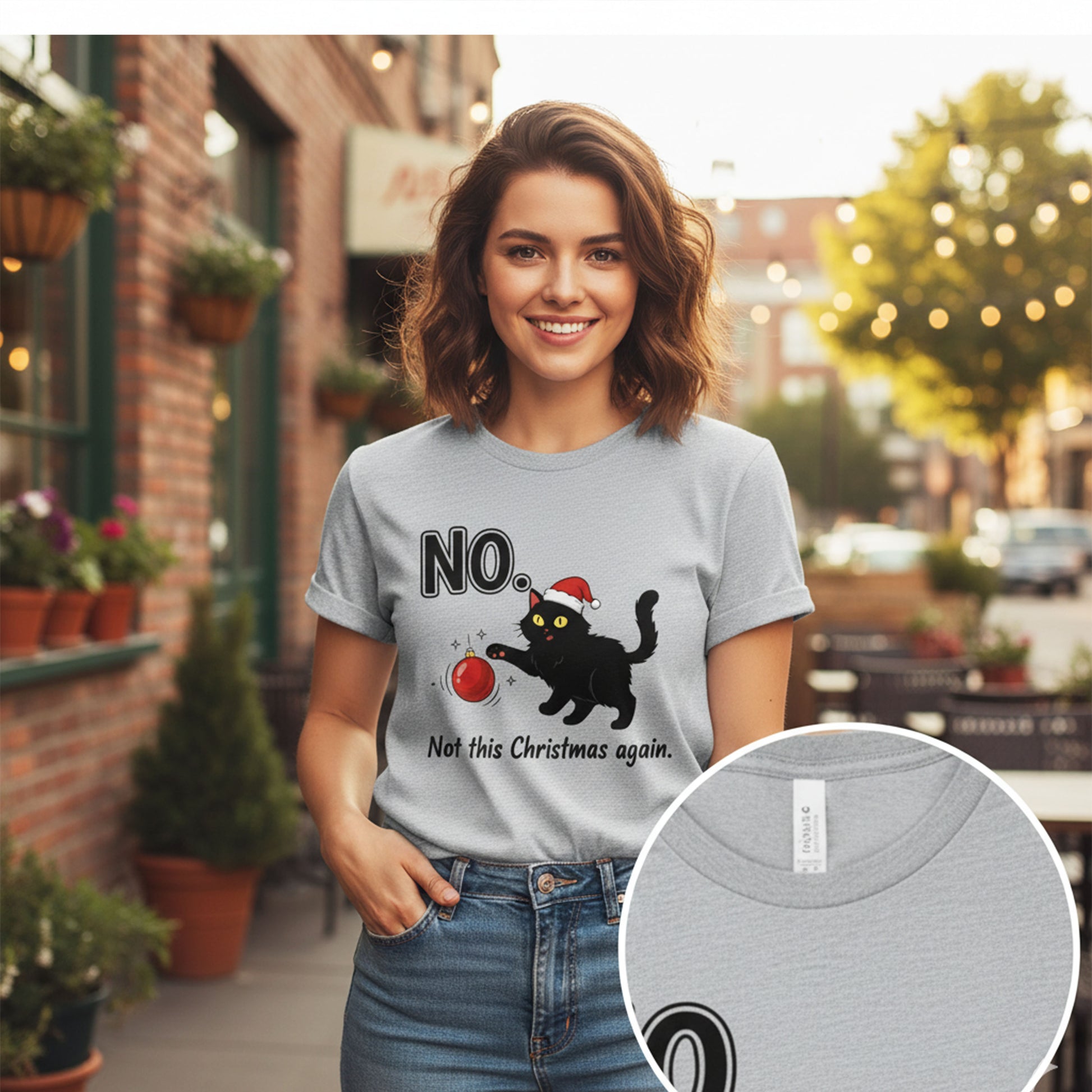 Funny Black Cat Christmas T-Shirt, No Not This Christmas Again Tee, Cat Lover Holiday Shirt, Cute Xmas Gift, Festive Pet Humor Top | T-shirt 5