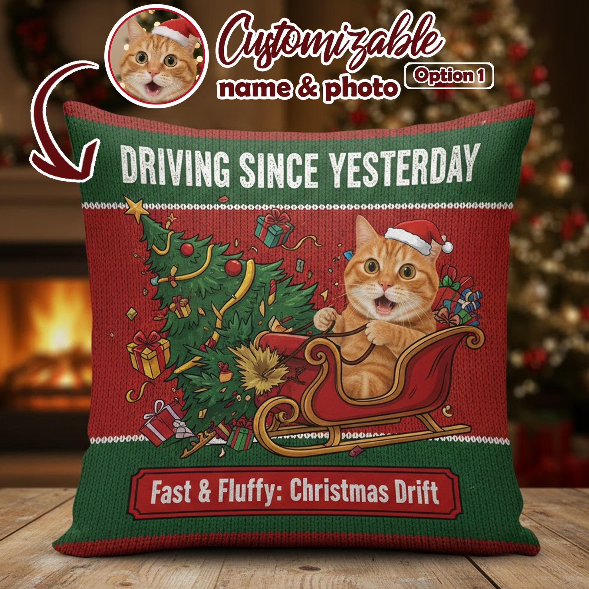 If you thought Christmas was a peaceful time... this pillow will change your mind! With the “Driving Since Yesterday” design , you can customize your pet’s face (or your own!) to turn yourself into the cutest “fast & fluffy” driver of the holiday season.