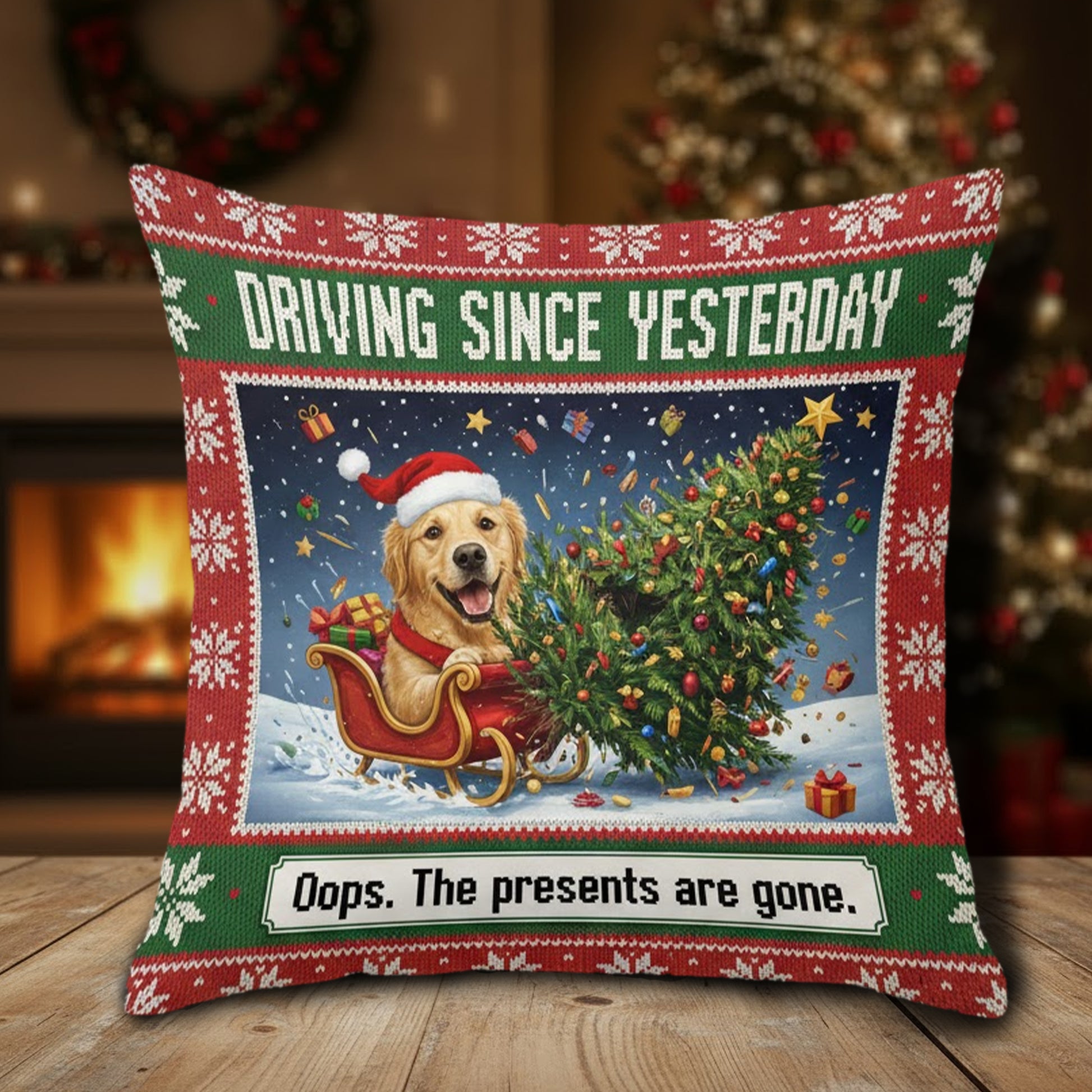 Whether it's “Oops! The presents are gone” or “Christmas Drift Champion,” this pillow will make everyone laugh at first sight.