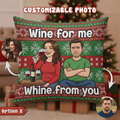 Funny Couple Pillow – “Wine for Me, Whine from You” Personalized Photo Cushion, Custom Gift for Him Her, Valentine or Christmas Decor | Pillow 82