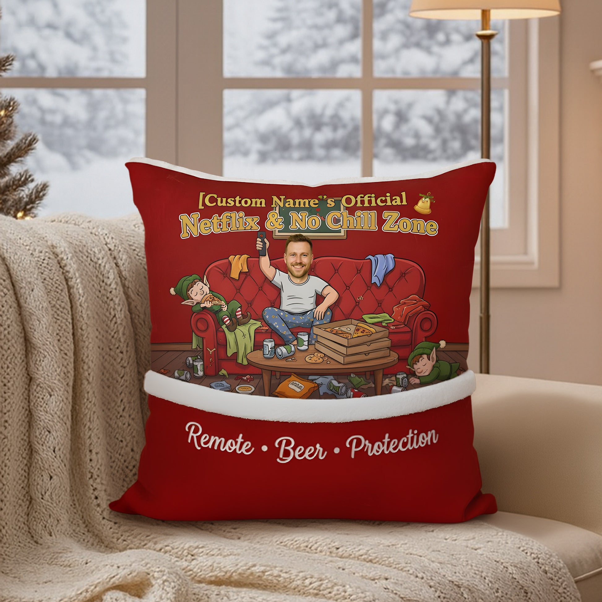 Funny Custom Christmas Pillow – Netflix & No Chill Zone, Personalized Photo & Name Gift, Holiday Humor Decor for Him | Pillow70