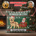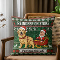 Funny Custom Pet Christmas Pillow – “Reindeer on Strike” Personalized Pet & Owner Cushion, Custom Face Holiday Gift, Xmas Decor | Pillow 44