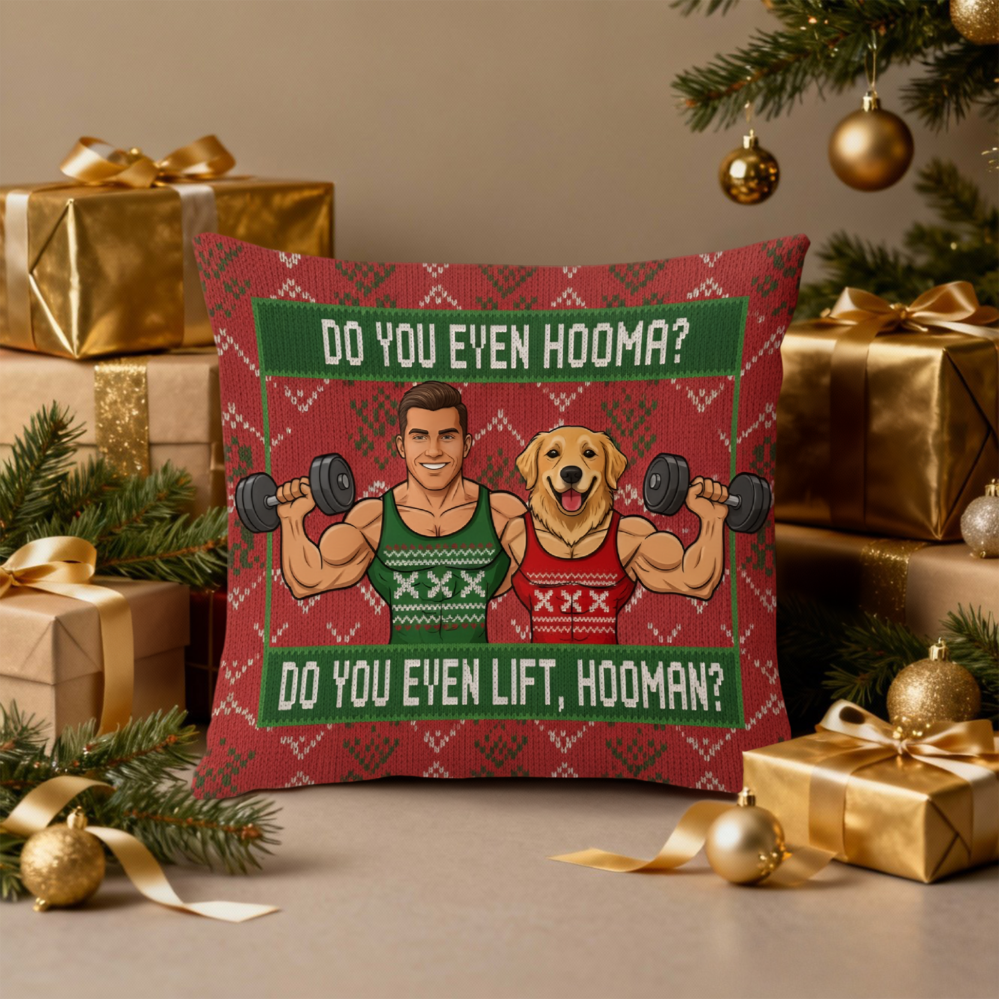 Funny Dog Pillow β Do You Even Lift Hooman β Personalized Pet Photo Cushion β Custom Christmas Gym Dog Gift β Pet Lover Holiday Decor | Pillow 37, 38