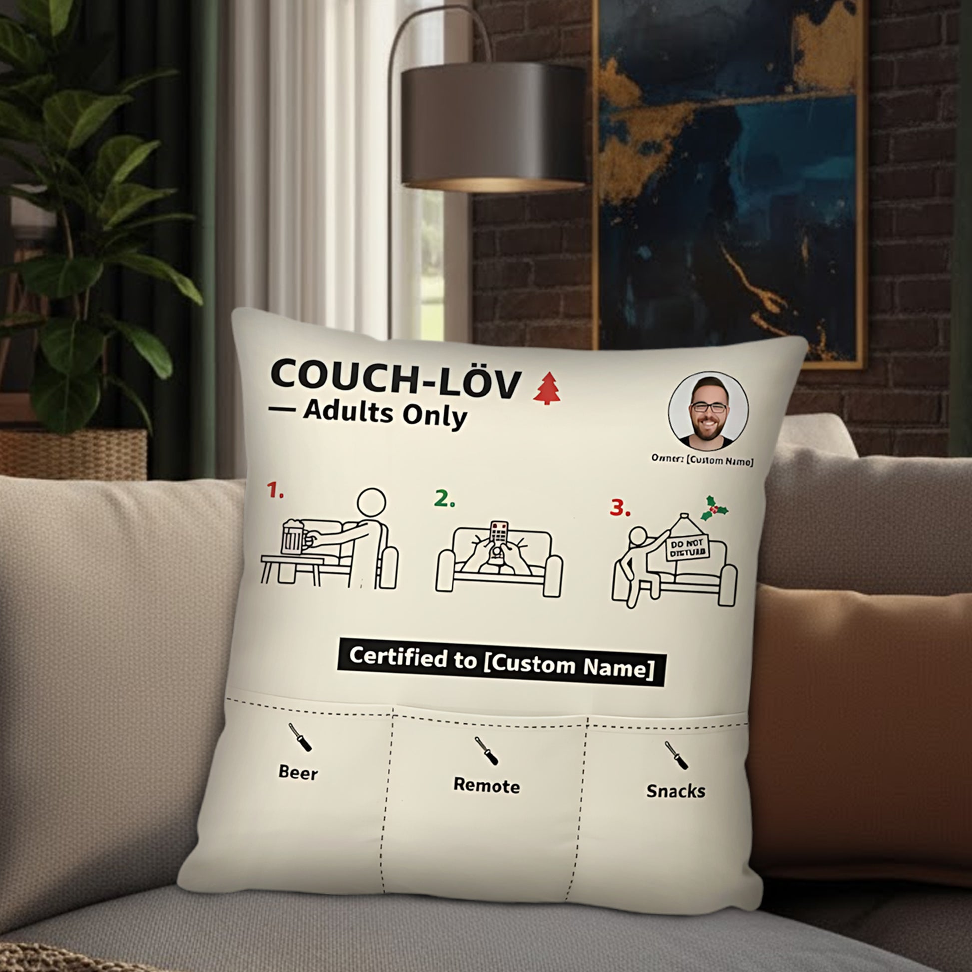 👉 Claim your throne today — customize your “COUCH-LÖV – Adults Only” pillow and make sure everyone knows who rules the couch this Christmas! 🍻