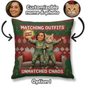 Funny Matching Outfits Pillow – Custom Dog Photo Cushion – Unmatched Chaos Christmas Gift – Personalized Pet Lover Throw Pillow – Pet Parent Holiday Decor | Pillow78