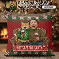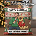 Funny Pet Christmas Pillow – Party Animals Not Safe for Santa, Custom Cat Dog Photo Gift, Personalized Holiday Decor | Pillow 79