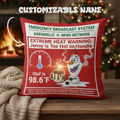 Funny Snowman Warning Pillow, Custom Name Extreme Heat Cushion, Personalized Linen Decor, Christmas Gift for Her or Him | Pillow 98