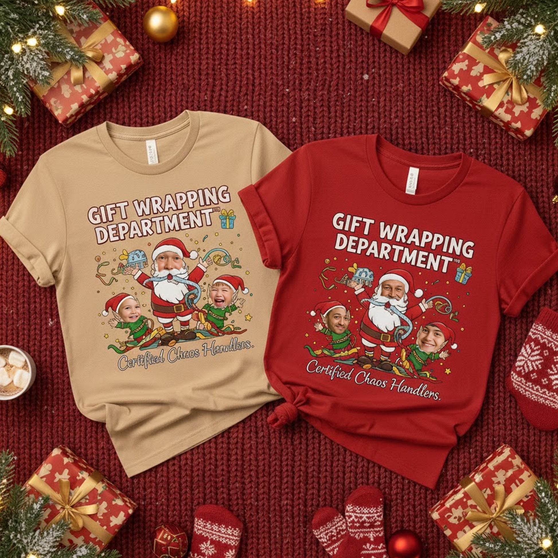 🎄 Join Santa’s Gift Wrapping Department today — upload your photos and create your Custom Christmas T-Shirt now!