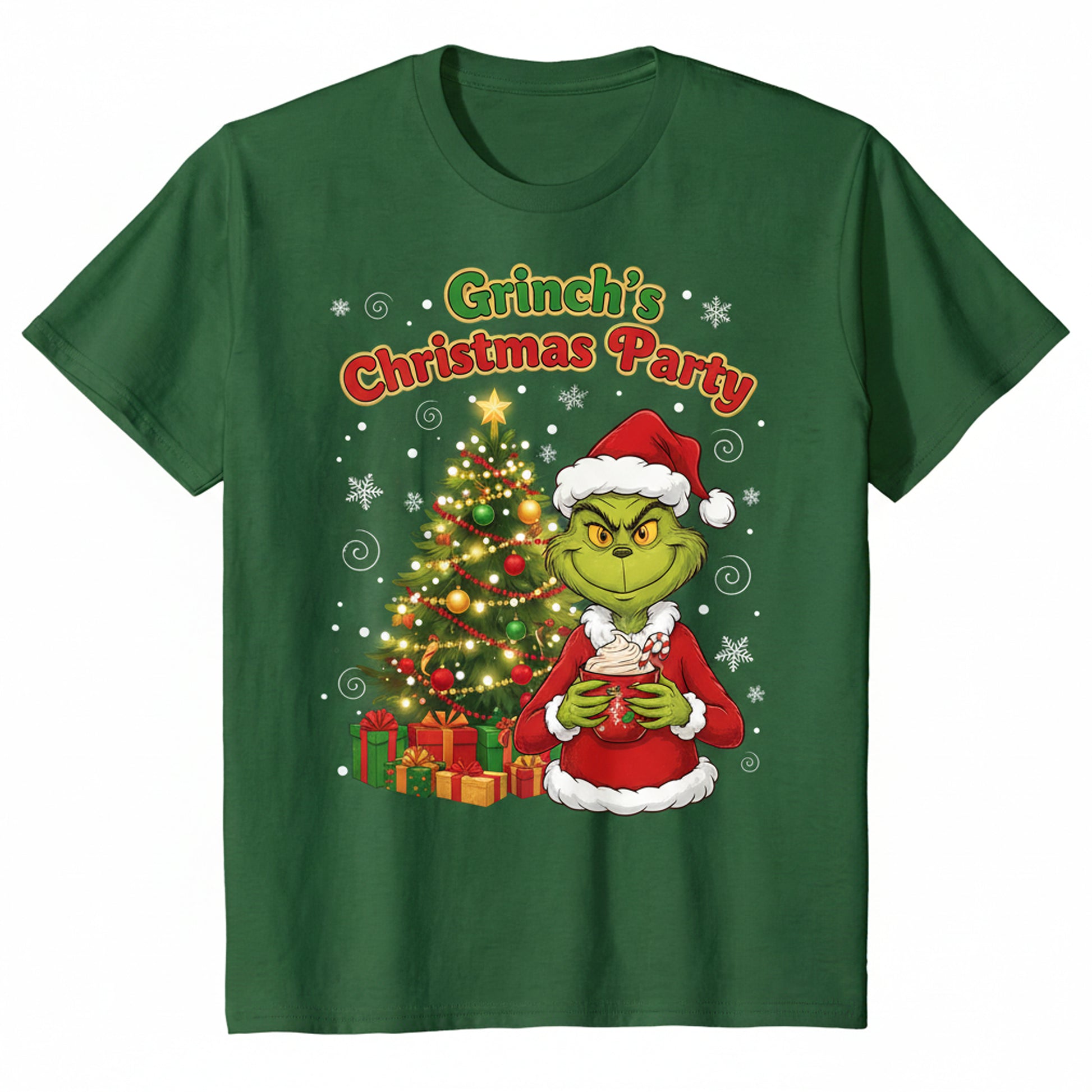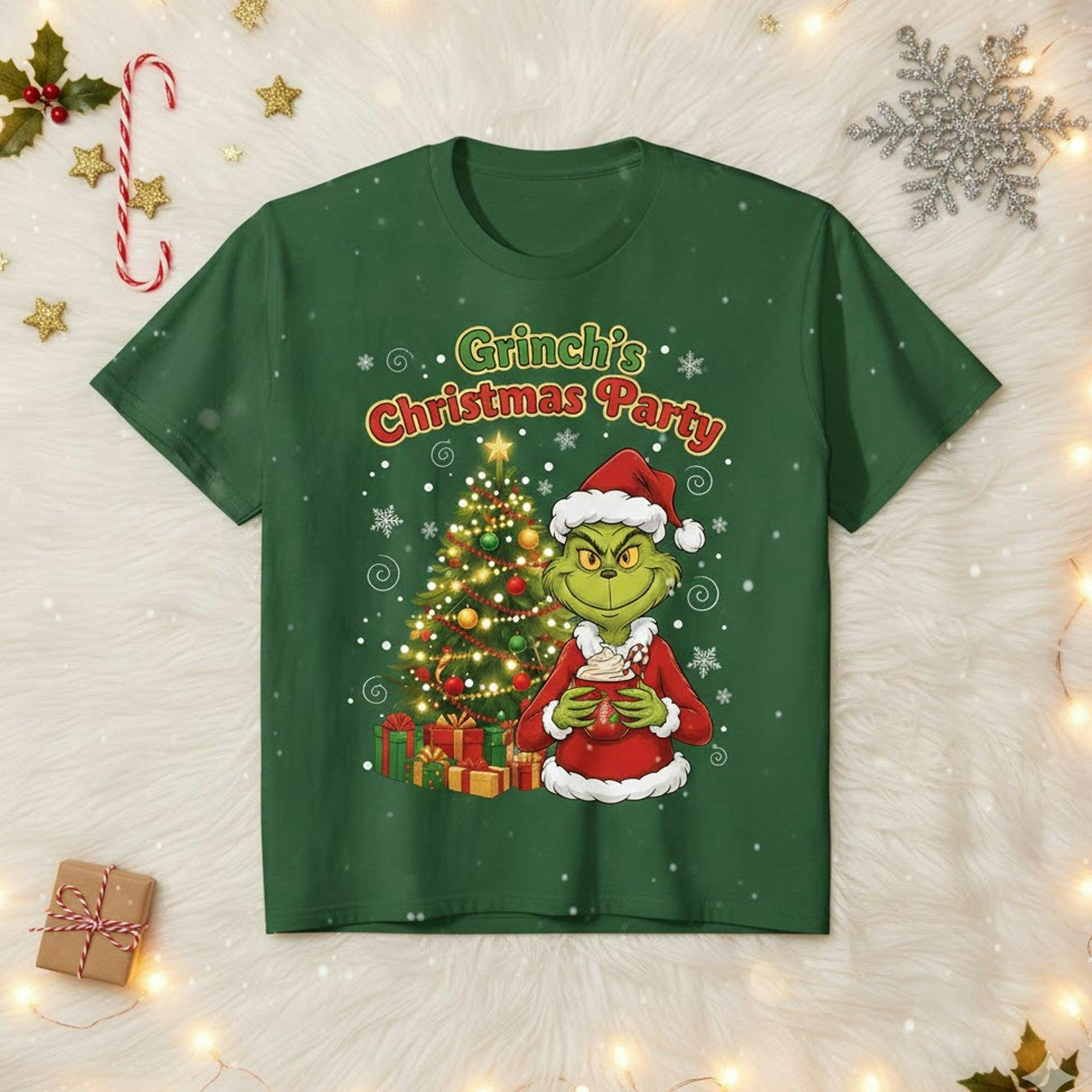 Grinch Christmas Party T-Shirt, Funny Holiday Tee, Santa Tree Gifts Graphic Shirt, Unisex Xmas Top, Festive Outfit for Men Women Kids - T-shirt69