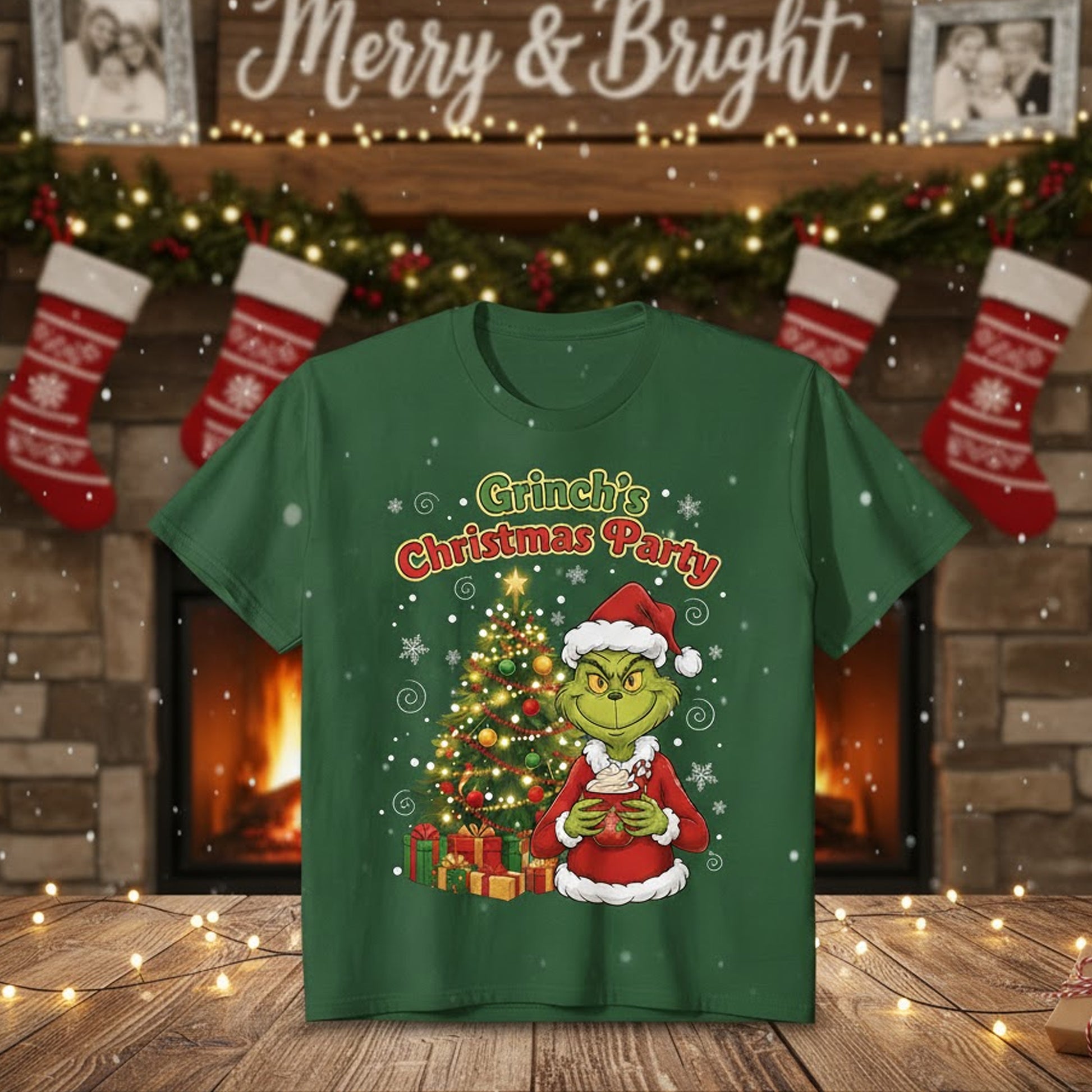 Bring the chaos and charm of Grinch’s Christmas Party to your holiday celebrations! This funny festive tee captures the mischievous spirit of Christmas — perfect for those who love laughter, lights, and a bit of Grinchy attitude. Whether it’s for a party, matching family outfit, or a cozy night in, this shirt guarantees smiles (and maybe a little mischief).