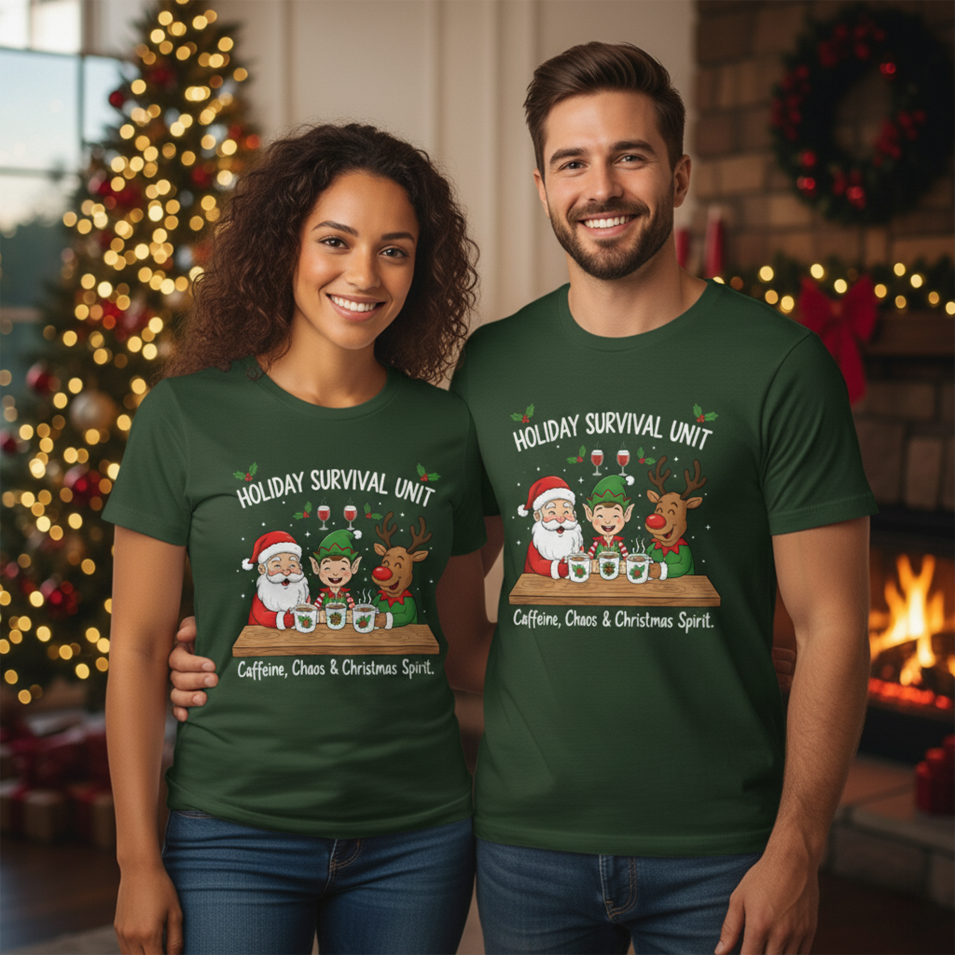☕ Power through the holidays in style — grab your Holiday Survival Unit T-Shirt today and embrace the chaos with caffeine and Christmas spirit! 💫