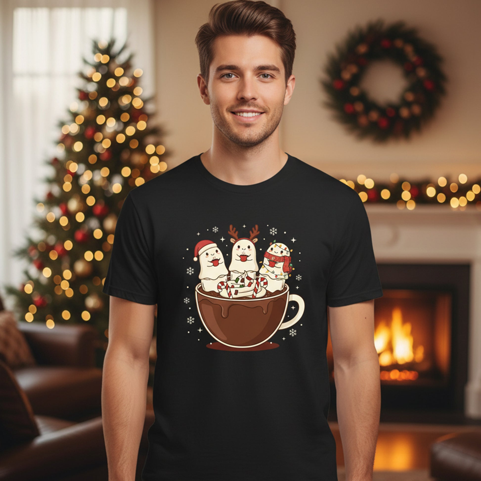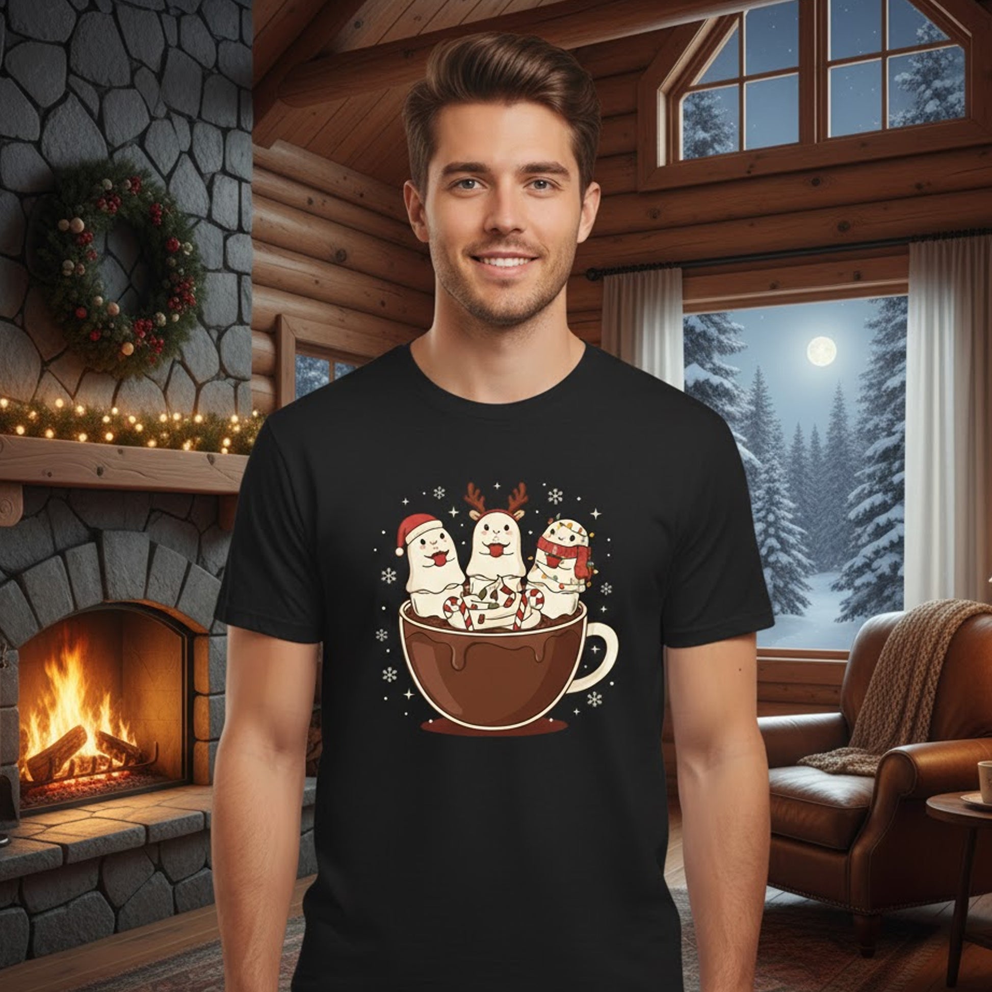 Hot Cocoa Marshmallow Christmas T-Shirt, Cute Holiday Tee, Funny Winter Coffee Shirt, Xmas Gift for Men Women Kids, Festive Unisex Top | T-shirt 56