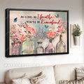 If you have a loved one who has gone, let our Light pink flower, Crystal vase, Beautiful sky, As long as I breathe, You'll be remembered - Heaven Landscape Canvas Prints, Wall Art soothe your soul. With pure flowers, fragile butterflies, a soft color tone, Light pink flower, Crystal vase, Beautiful sky, As long as I breathe, You'll be remembered - Heaven Landscape Canvas Prints, Wall Art will make you feel relaxed every time you look at it. Besides, the texture "As long as I breathe, You'll be remembered" will be a reminder to you that your loved one is always by your side. Light pink flower, Crystal vase, Beautiful sky, As long as I breathe, You'll be remembered - Heaven Landscape Canvas Prints, Wall Art is also a perfect gift to your friends who love flower and butterflies.