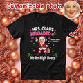 Unleash your inner holiday diva with our Mrs. Claus Reloaded™ Custom Photo T-Shirt – Ho Ho High Heels! 💋✨