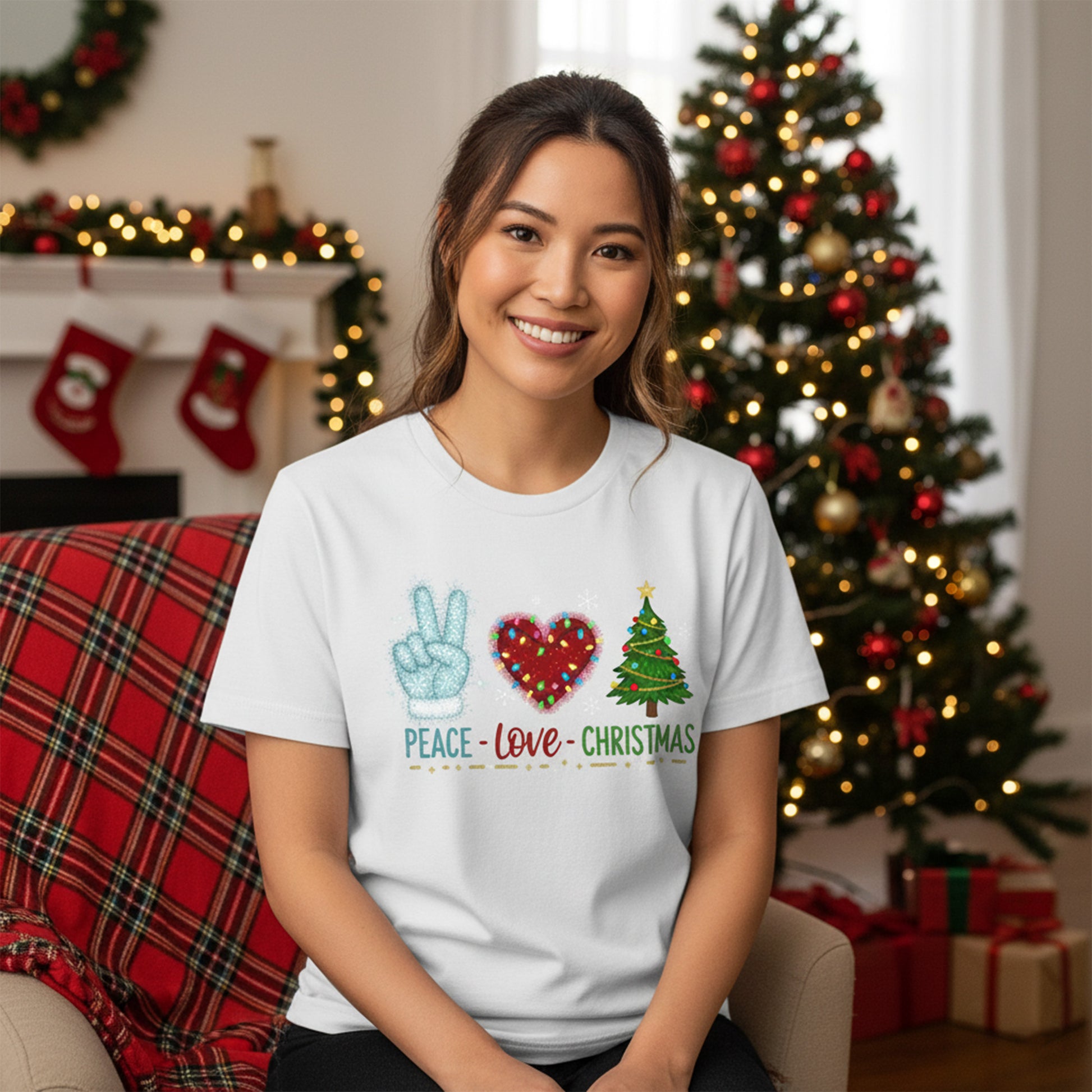 Spread the holiday spirit with our Peace • Love • Christmas T-shirt! 🎄✨