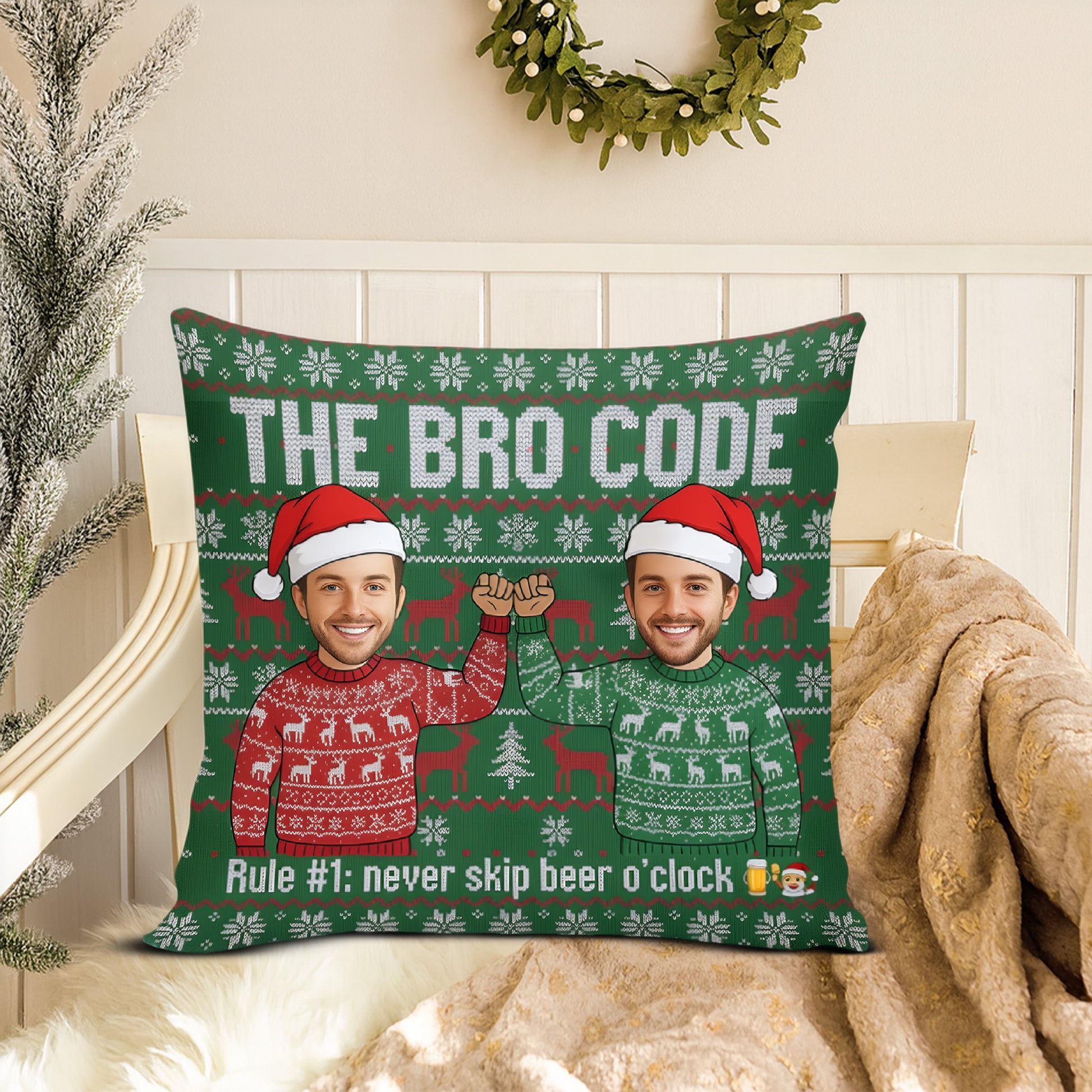 Personalized Double-Sided Christmas Pillow – Custom Face | “The Bro Code” Funny Christmas Gift for Brothers & Friends | Pillow20
